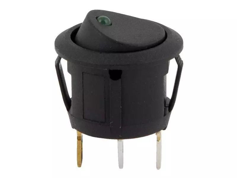 off-on, ilman symbolia, vihreä led. 20A @12V, laattaliittimet