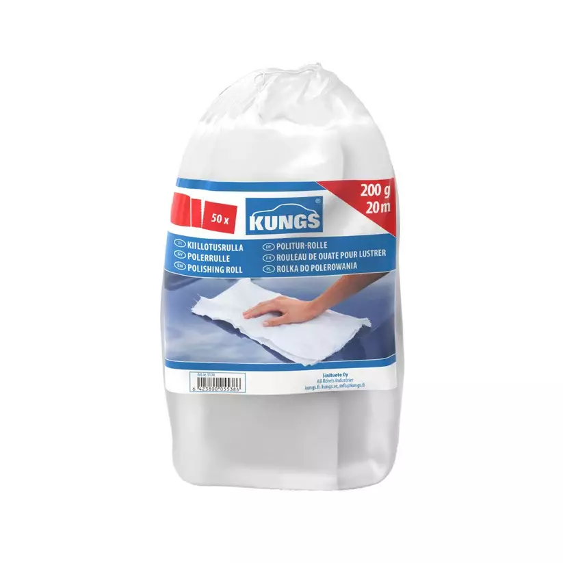 Kungs-kiillotusliina sopii autojen, veneiden ja matkailuautojen kiillottamiseen sekä erilaisiin huoltotehtäviin. Liina on erittäin pehmeää, kestävää ja imukykyistä. Kiillotusliina on myös erinomainen työkalu vahauksen jälkeiseen viimeistelyyn. Kiillotusliina on valmistettu ympäristöystävällisestä polyesteristä ja viskoosista. Yhdessä rullassa on 200 g/20 metriä kangasta, mikä kestää pitkään. Liina on pakattu muovipussiin, joten se on helppo säilyttää puhtaana.