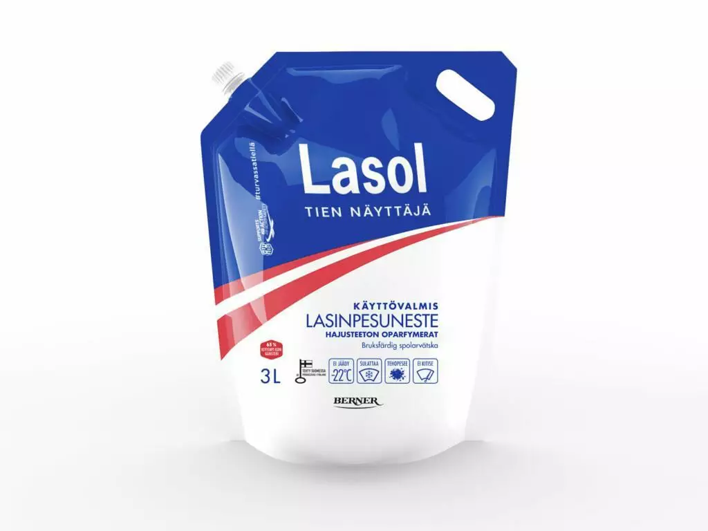 Laadukas etanolipohjainen lasinpesuneste, jonka pakkaskesto on -22°C. Puhdistaa tuulilasin ja ajovalot kirkkaiksi eikä muodosta tuulilasiin häiritsevää kalvoa tai jätä raitoja. Pesevien ainesosien lisäksi käyttövalmis Lasol sisältää myös tuulilasinpyyhkijöiden kumi- ja muoviosia hoitavia ainesosia. Paukkupakkasilla saat jopa -30 asteen pakkasessa toimivan lasinpesunesteen, kun sekoitat säiliöön 3 L käyttövalmista (kesto -22°C) ja Lasol 1L lasinpesuainepullollisen (-60°C kesto).