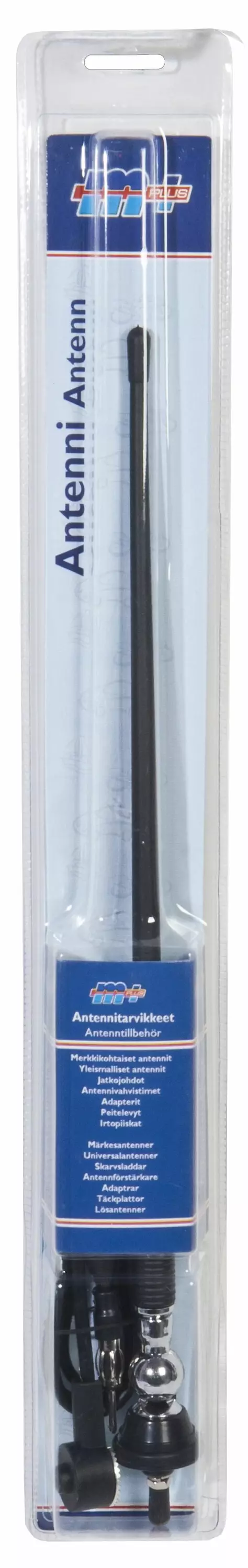 Erittäin taipuisa ja kestävä isompi kumipatukka antenni. Pituus 410mm, kaapelin pituus 1,4 m. Kromattu pallonivel, kääntyy 0-180 astetta.