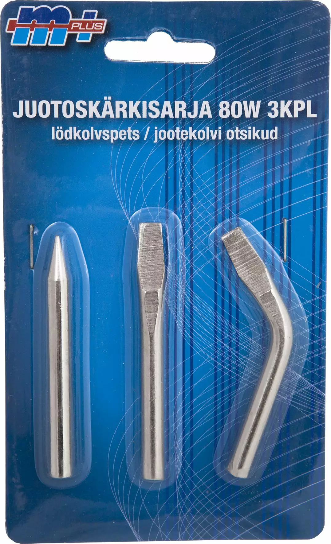 M+ 3-osainen juotoskärkisarja juotoskolville. Sarjassa piikki, taltta ja kulmatalttakärki.