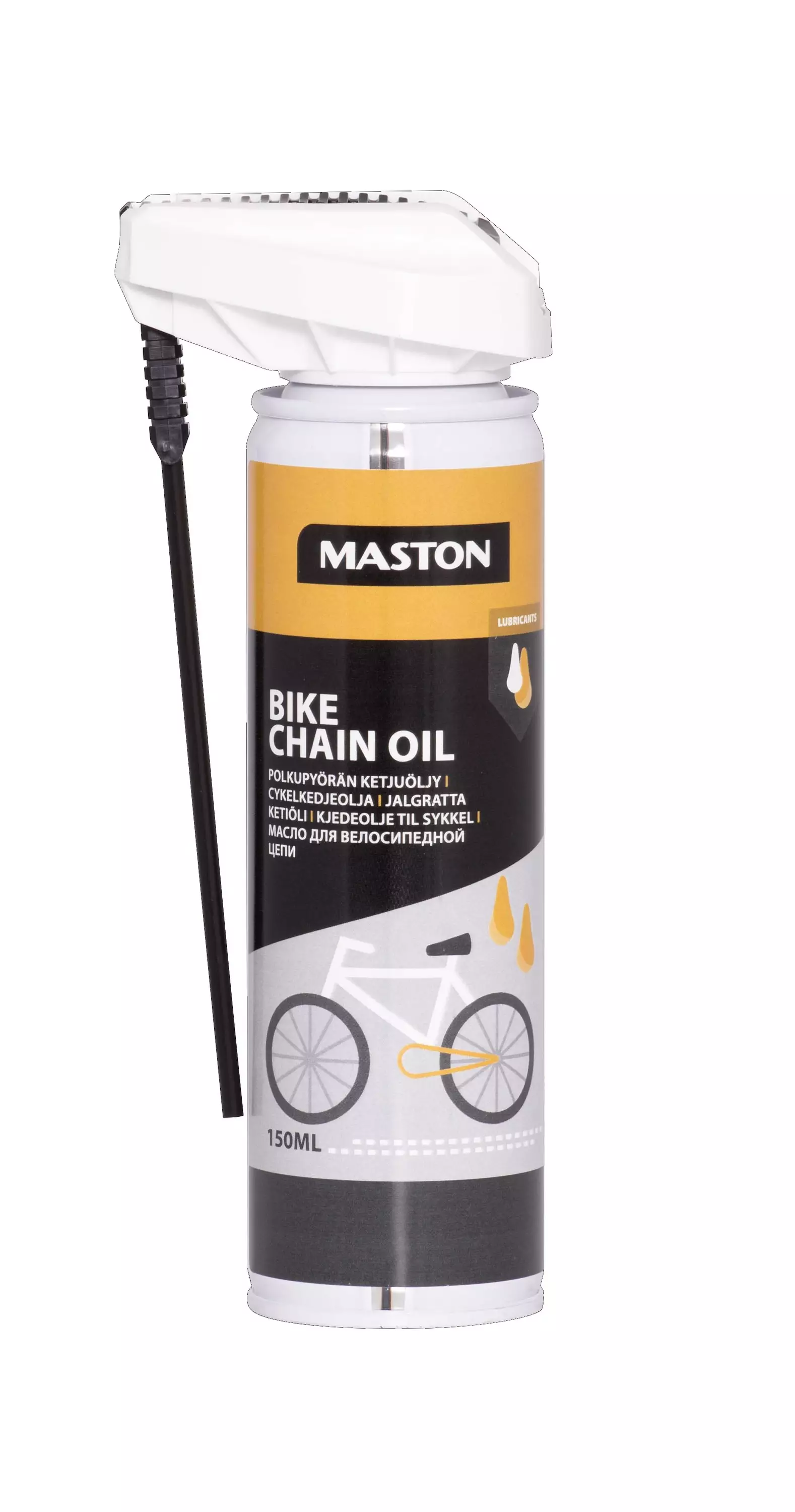 Maston polkupyörän ketjuöljy on suoja- ja voiteluöljy polkupyörän ketjuille. Tunkeutuu ketjun ytimeen vähentäen kitkan aiheuttamaa kulumista lisäten samalla ketjujen käyttöikää. Harrastaja- ja kilpakäyttöön.