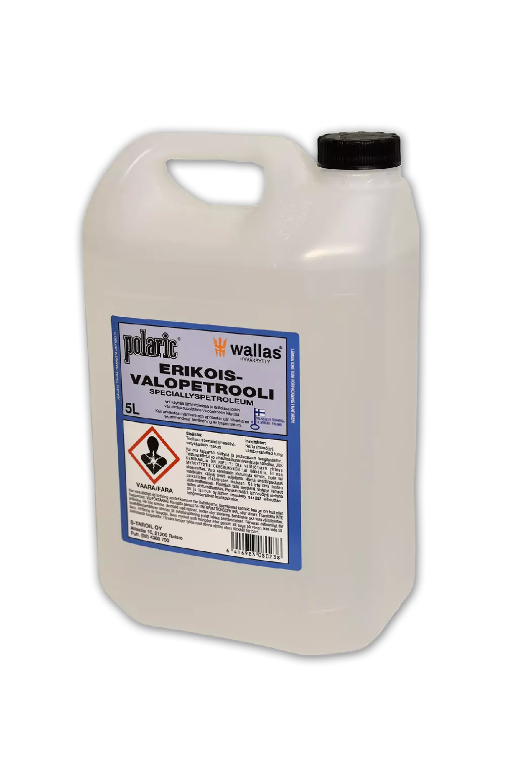 Erikoisvalopetrooli 5 LSoveltuu öljylamppuihin, lämmittimiin ja laitteisiin, joihin valmistaja suosittelee valopetrolin käyttöä.Wallas-hyväksytty. "