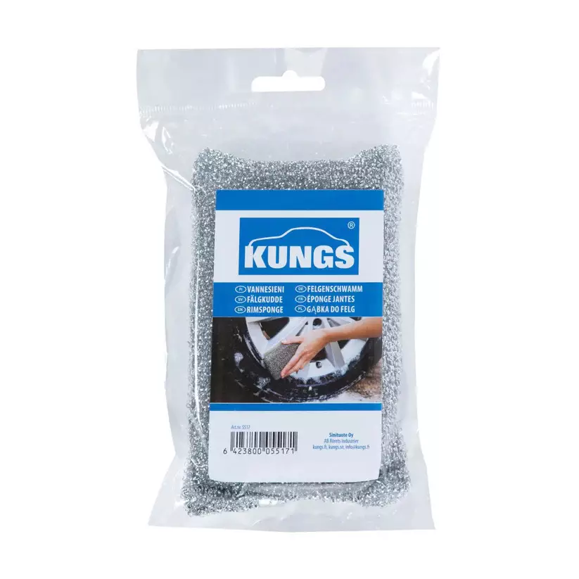 Kungs-vannesieni sopii alumiini- ja teräsvanteiden sekä moottoripyörän vanteiden hellävaraiseen mutta tehokkaaseen puhdistukseen. Se on myös erinomainen työkalu puskureiden ja kaikkien ruostumattomasta teräksestä valmistettujen osien puhdistukseen. Sienen kätevä koko takaa hyvän otteen. Likainen sieni on helppo huuhdella puhtaaksi.