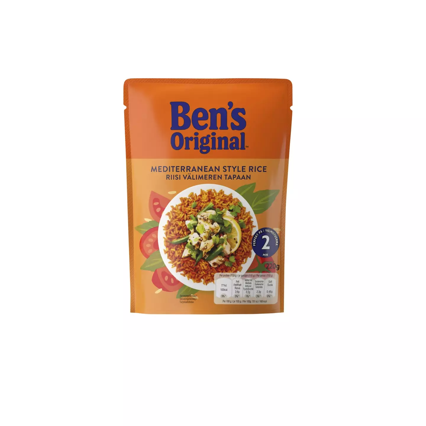 Ben's Original Välimeren tapaan -valmisriisi on nopea ja helppo lisuke aterialle. Tomaatilla ja basilikalla maustettua valmisriisiä ei tarvitse keittää, vaan kätevän mikropussin lämmittäminen mikrossa tai kattilassa riittää. Kuumennukseen kuluu vain muutama minuutti. Lisää vain valmiin riisin kanssa makusi mukaan salaatti, kasvikset tai liha, ja maistuva ateria on valmis!