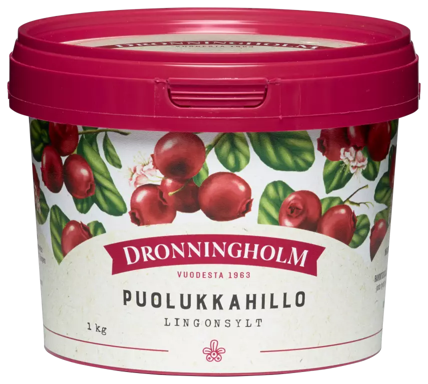 Huolella ja rakkaudella valmistamamme puolukkahillo on hillomaailman klassikko. Tällä hillollamme kruunaat niin liha-, pata-, kaali- kuin riistaruuatkin. Vegaaninen. Sopii vegaaneille. Dronningholm - siinä on marjat!