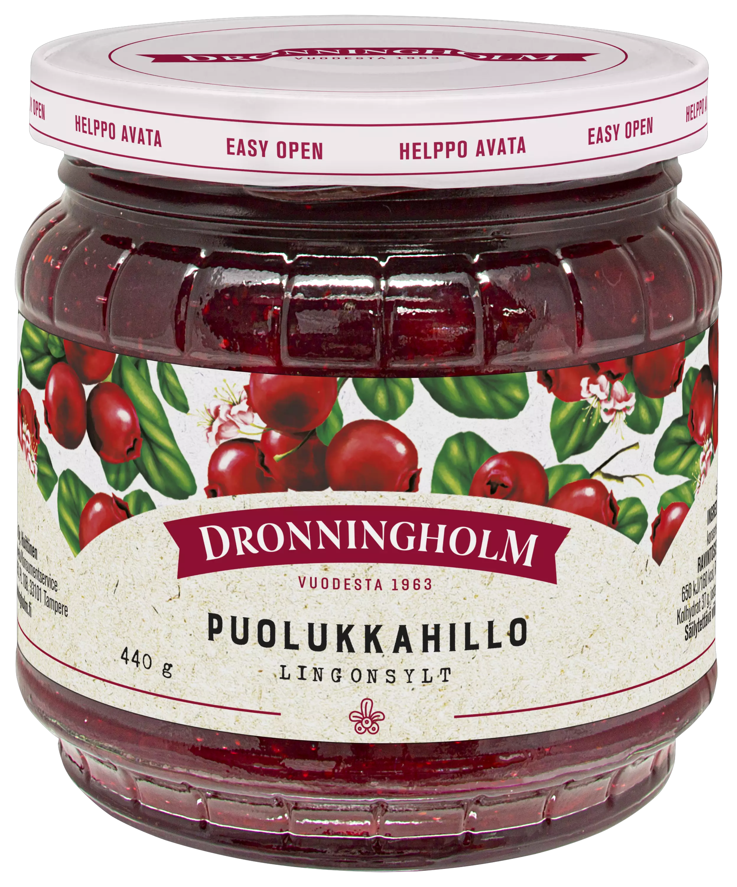 Huolella ja rakkaudella valmistamamme puolukkahillo on hillomaailman klassikko. Tällä hillollamme kruunaat niin liha-, pata-, kaali- kuin riistaruuatkin. Vegaaninen. Sopii vegaaneille. Dronningholm - siinä on marjat!