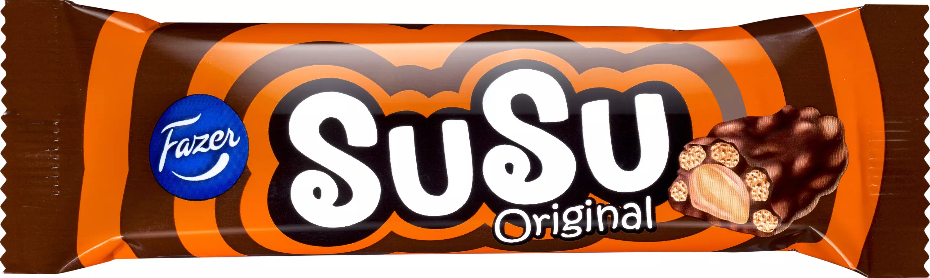 Susu on rakastettu retroherkku, joka on sulattanut suklaanystävien sydämet jo 1970-luvulta saakka. Suklaapatukan herkullista maitosuklaakuorrutusta ja rapeaa riisimuroa täydentää makea toffeetäyte. Noudatamme kaakaonhankinnassamme Fazerin kaakaovisiota. Lue lisää www.fazercocoavision.com. Nauti Susu-patukka suklaiseksi välipalaksi tai kahvin kanssa. Susu maistuu niin kuin pusu, jonka parhaimmalta ystävältä saat.