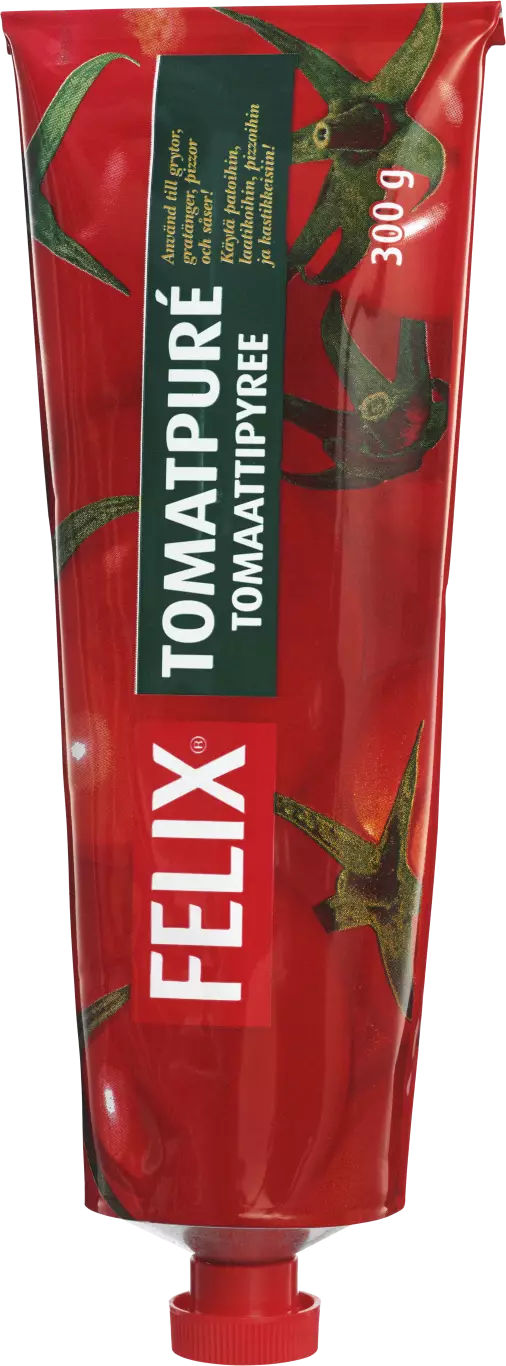 Felix® tomaattipyree kuuluu automaattisesti kotona tehdyn pizzapohjan päälle. Tomaattipyree tuo lisämakua myös keittoihin, patoihin ja erilaisiin kastikkeisiin. Kätevä tuubi helpottaa annostelua ja pakkaus säilyy siistinä jääkaapissa seuraavaa käyttökertaa varten. 100 g Felixin tomaattipyreetä vastaa 430 g tuoreita tomaatteja. Tuote sopii myös vegaaniseen ruokavalioon. Lue lisää felix.fi. Felix - herkkuja ruokapöytään®.