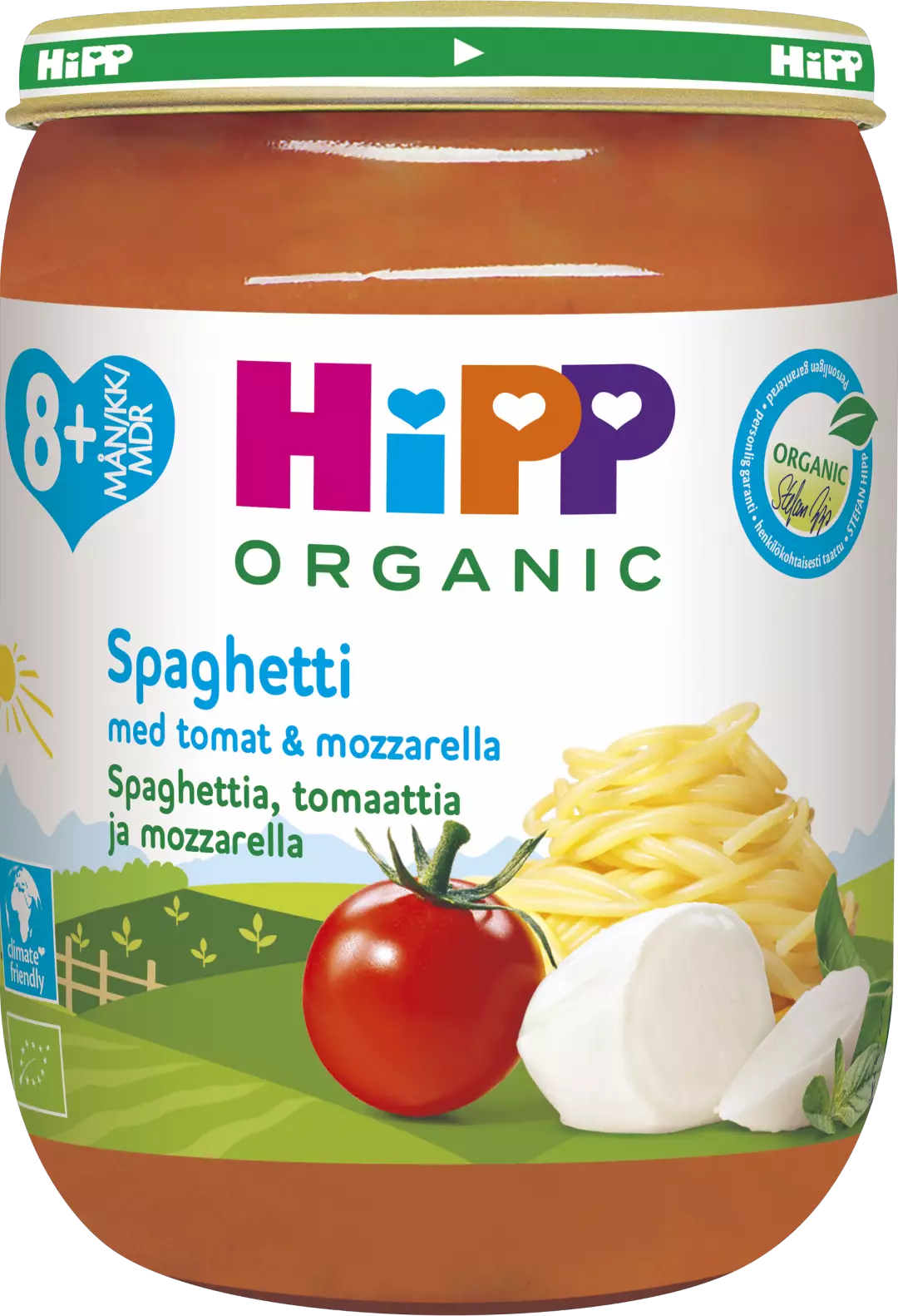 HiPPin ateriat on valmistettu huolella parhaista luonnonmukaisista raaka-aineista. Siksi ne ovat mieluisia ja maistuvat hyviltä. Kaikki reseptimme on laadittu ravitsemusasiantuntijoiden kanssa, jotta voit olla varma, että lapsesi saa ruoasta kaikki tarvitsemansa hyödyt. HiPP Luomu Spagettia, Tomaattia ja Mozzarellaa. Vain parhaista luomuraaka-aineista huolella valmistettu lämminruoka. Alkaen 8 kuukauden ikäisille. Sopii lounaaksi tai illalliseksi.