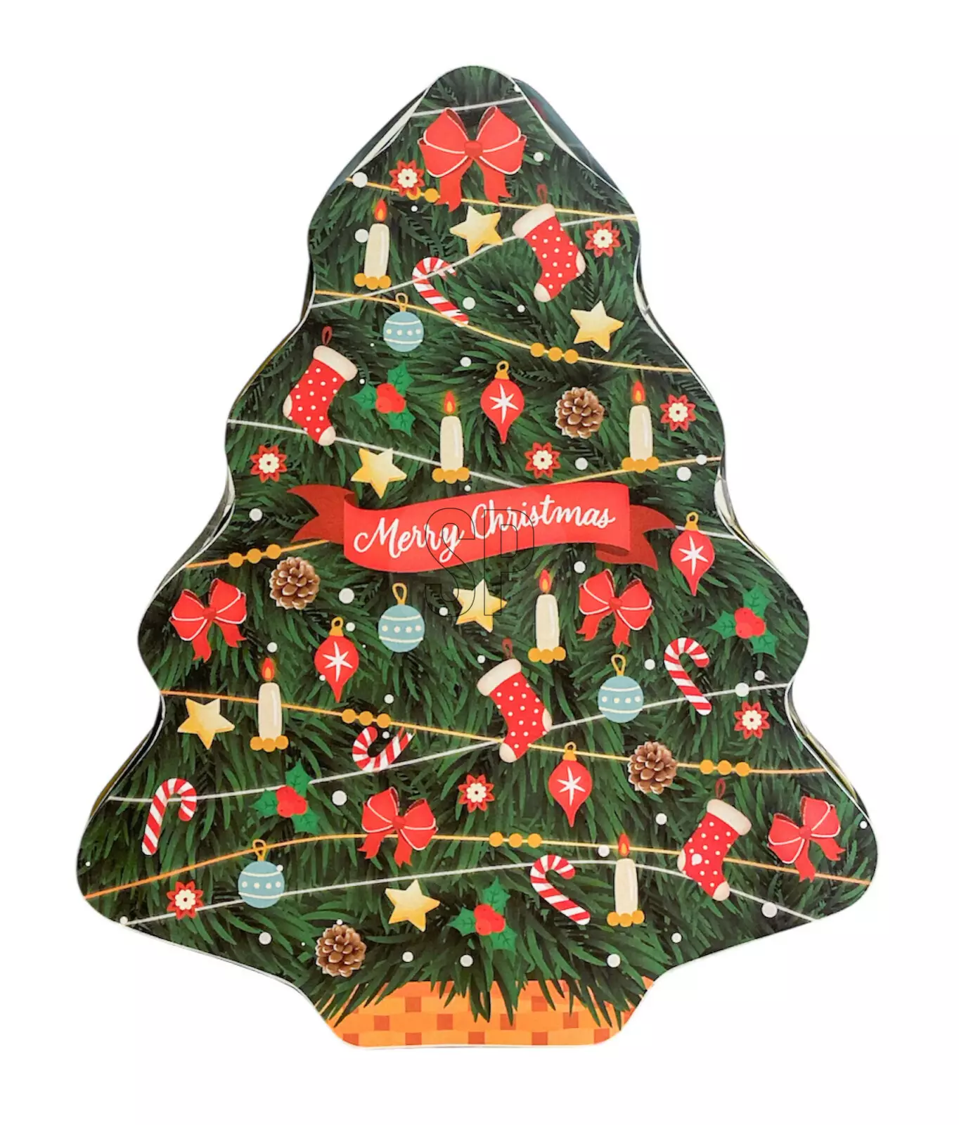 Joulukuusi peltirasiaJoulukuusen muotoinen peltirasia, jossa kaunis ja värikäs kuusenkoristekuviointi. Sopii erinomaisesti joulumakeisten, pikkulahjojen tai koristeiden säilytykseen ja tuo juhlaan... Lue lisää