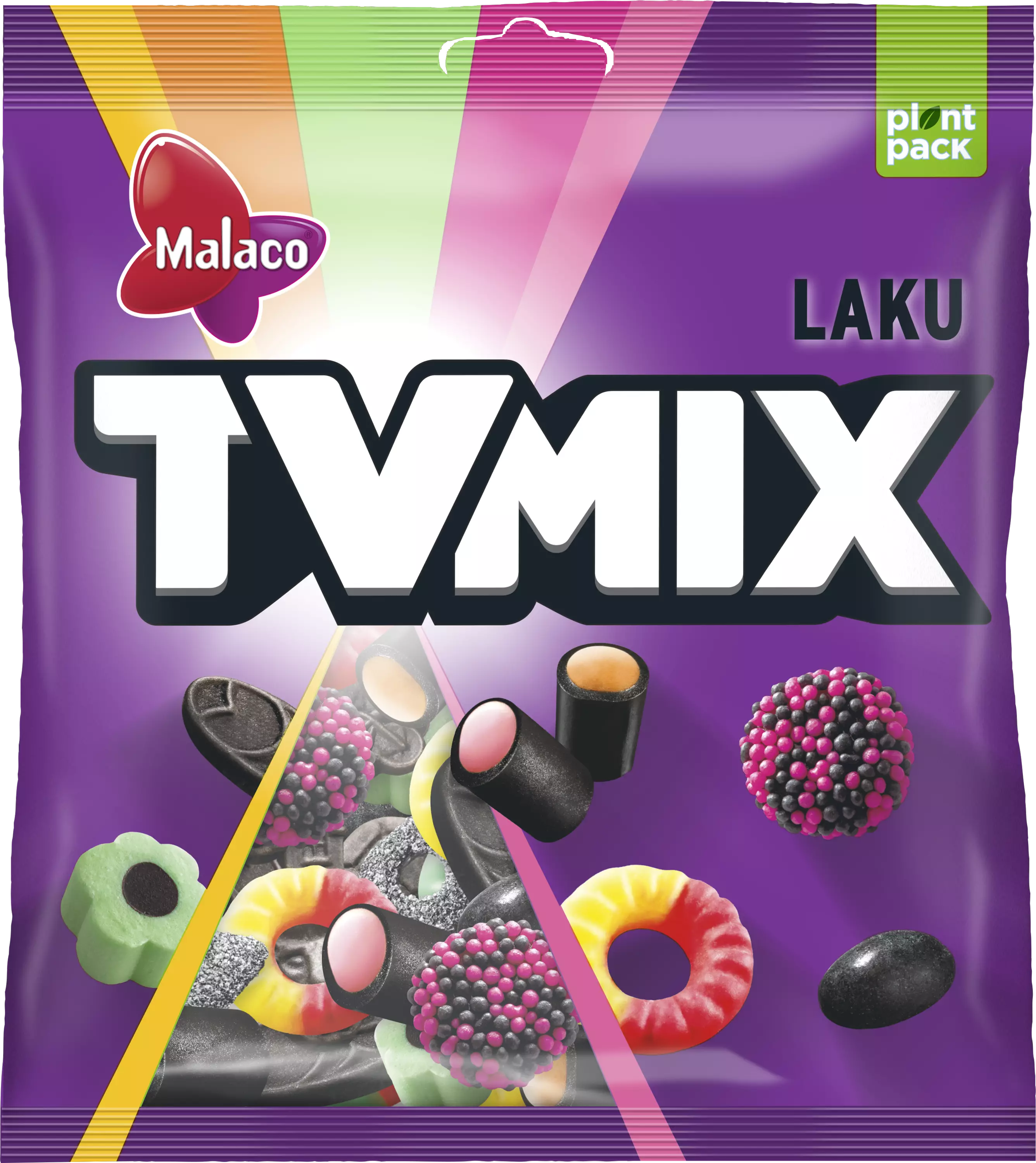 Parhaat on sekaisin! TV Mix Laku on monipuolinen sekoitus lakritsikarkkeja ja hedelmäisiä makuja. Pussi sisältää mm. SukuLaku ja PusPus -lakuja, raikkaan omenaista Omppu-lakua, lakurakeita, sokeroituja lakutimantteja ja lakunmakuisia nomppanappeja. Reilun kokoisesta pussista riittää jaettavaa perheenja ystävien kanssa. Karkit on pakattu pussiin, joka on valmistettu 50 % kasvipohjaisesta muovista. Lisätietoja cloetta.com/plantpack