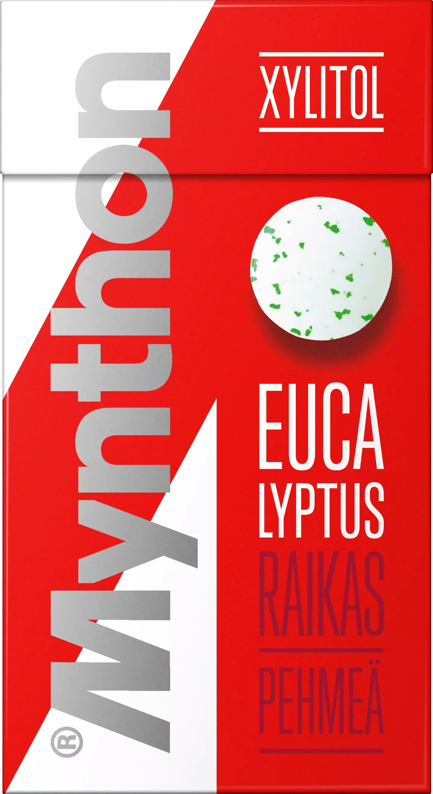 Mynthon Xylitol Eucalyptus + B-vitamiini & kalsium -pastillit raikastavat hengityksen ja tekevät hyvää hampaille. Pehmeä, pureskeltava rakenne sekä raikas eukalyptuksen ja mentholin maku takaavat suun kokonaisvaltaisen raikkauden. Pastilleihin lisätty B-vitamiinia ja kalsiumia. Pastilleilla on Suomen Hammaslääkäriliiton suositusmerkki.