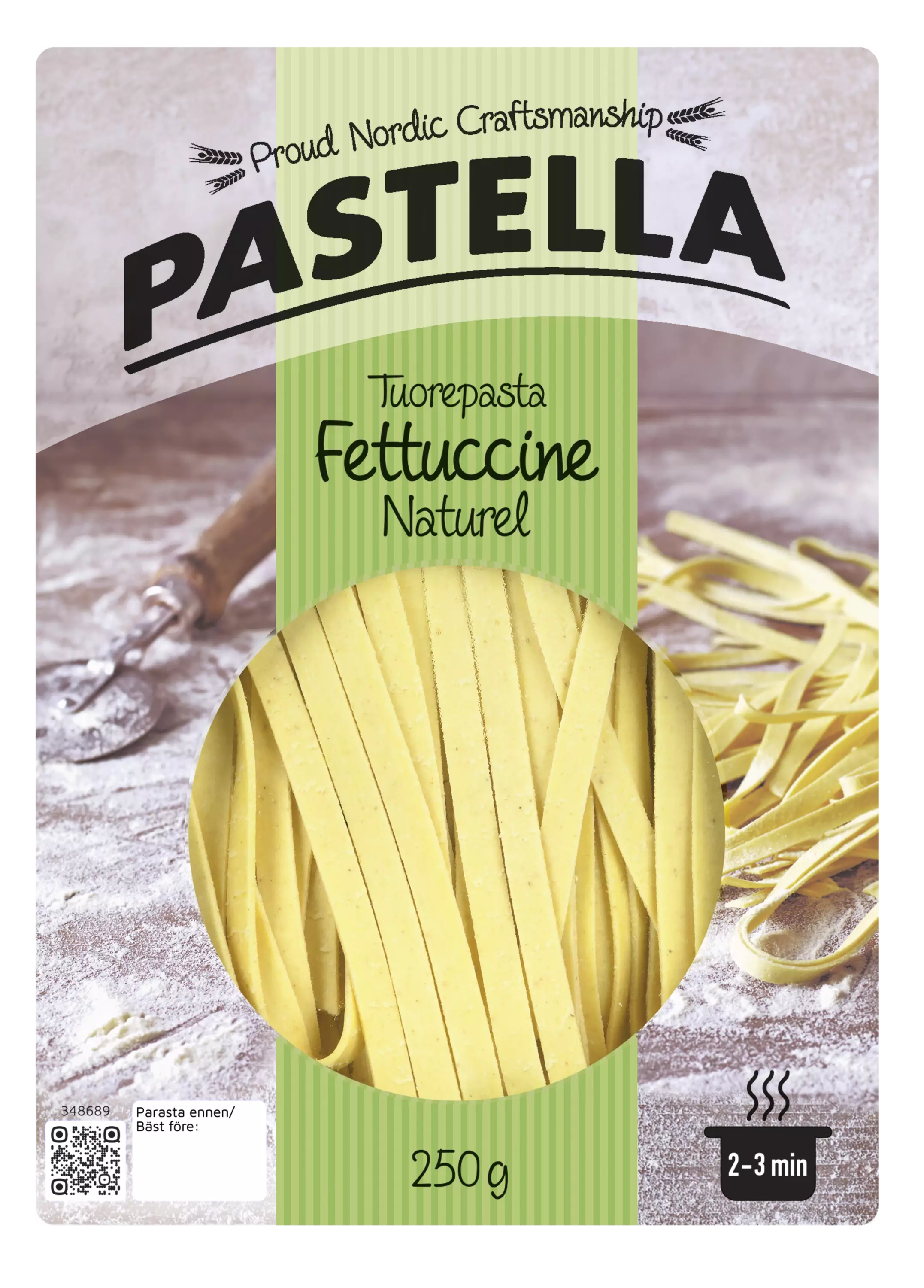 Korkealaatuiset Pastella® tuorepastat ovat herkullinen ja nopea ratkaisu arjen ateriahetkiin, sillä ne kypsyvät vain kahdessa minuutissa. Tuorepastat ovat maukkaita ja niissä on mukavan napakka ”al dente” -suutuntuma. Pastella Fettucine Naturel on klassinen litteä nauhapasta, jonka leveys on noin 0,5 cm. Se on valmistettu durumvehnästä ja kananmunasta. Se on monikäyttöinen, monenlaisten pastakastikkeiden kanssa sopiva pasta, joka löytyy kaupan kylmähyllystä.