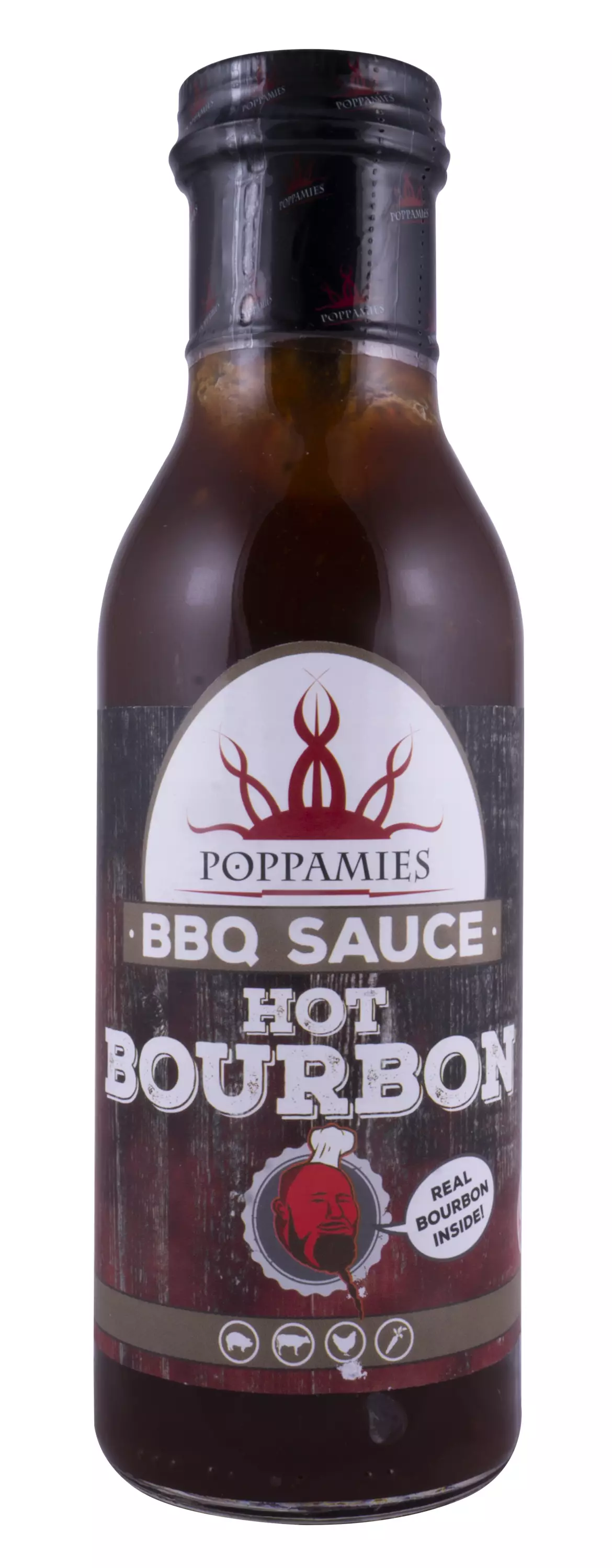 Tulinen grillikastike, joka sisältää aitoa Bourbonia. Poppamies Hot Bourbon BBQ on tulinen ja täyteläinen omenoista, chipotlesta ja bourbonista tehty kastike. Soveltuu grillaukseen, burgereihin, dipiksi ja ateriakastikkeeksi. Gluteeniton, laktoositon, vegaaninen.