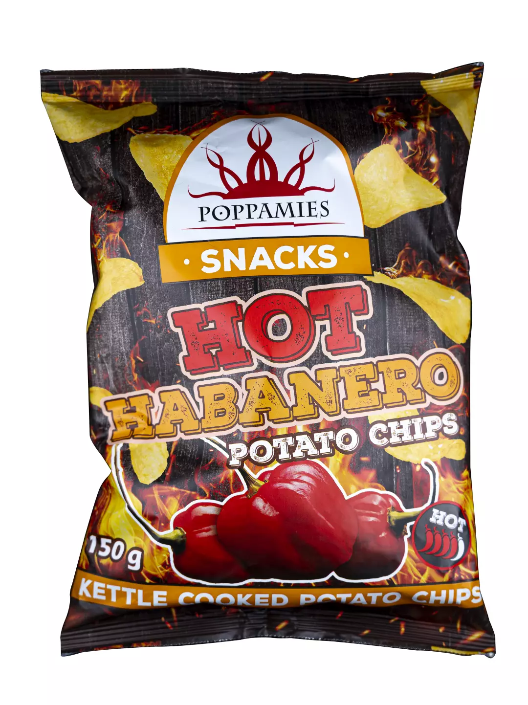 Poppamiehen tulisen mausteiset sipsit ovat täällä. Habaneron tulinen polte yhdistettynä erittäin rapeisiin, käsintehtyihin perunalastuihin on voittamaton yhdistelmä chilin ystäville. Näissä perunalastuissa habanero-chili todella maistuu ja tuntuu. Gluteeniton, laktoositon, vegaaninen.