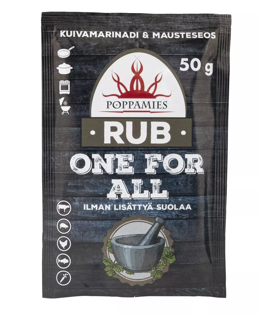 Poppamies One for All Rub on monikäyttöinen mausteseos ilman lisättyä suolaa! Tämä mausteseos on kehitetty täydentämään monia ruokia, kuten lihaa, kasviksia, keittoja ja patoja, ja voit käyttää sitä runsaasti ilman ylisuolauksen riskiä. Mausteet tukevat toisiaan, luoden tasapainoisen ja täyteläisen maun, joka nostaa ruoanlaiton uudelle tasolle. Paistat, grillaat tai paahdat, Poppamies One for All Rub on monikäyttöinen ratkaisu jokaiseen keittiöön. Gluteeniton, laktoositon, vegaaninen.