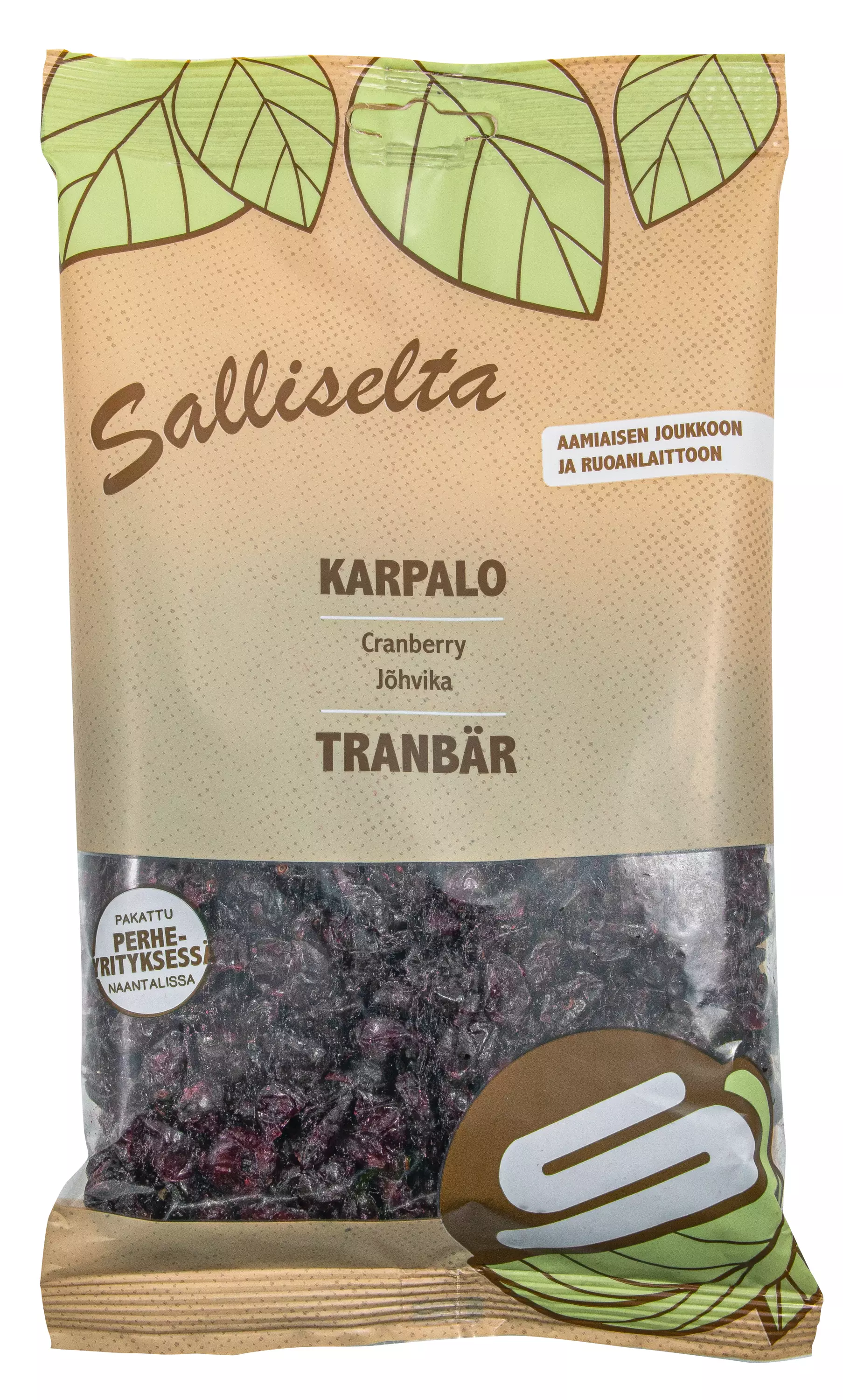 Karpalo on puolukoiden sukuun kuuluva ainavihanta varpu. Karpaloita voi nauttia ihan sellaisenaan tai lisätä aamupuuroon tai jugurttiin. Kirpeän happamat karpalot sopivat myös leivontaan ja jälkiruokiin sekä ruuanlaittoon. Karpaloista nautitaan ympäri vuoden, mutta erityisesti niitä syödään jouluna. Salliselta tuotteet pakataan Suomessa.