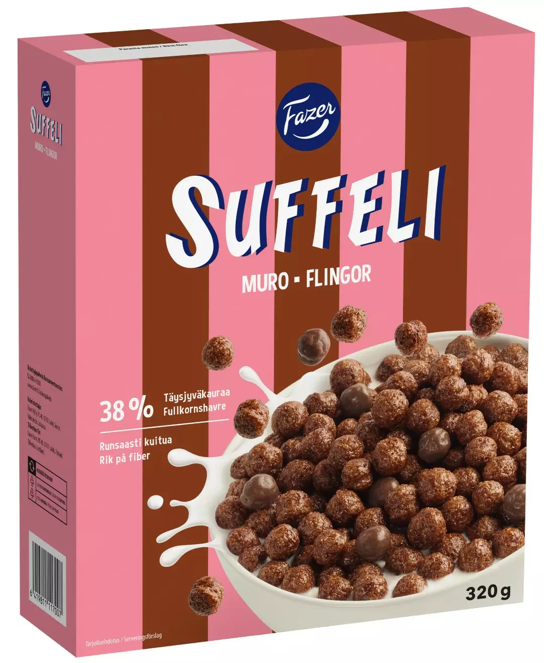 Ihastuttavat Suffeli murot tarjoavat täydellisen yhdistelmän herkullisia kaakaomuroja ja maitosuklaalla kuorrutettuja suklaamuroja (15 %). Nämä rapeat kaakaomurot ovat runsaskuituisia ja sisältävät 36 % täysjyväkauraa. Suffeli muro – herkullisiin hetkiin!