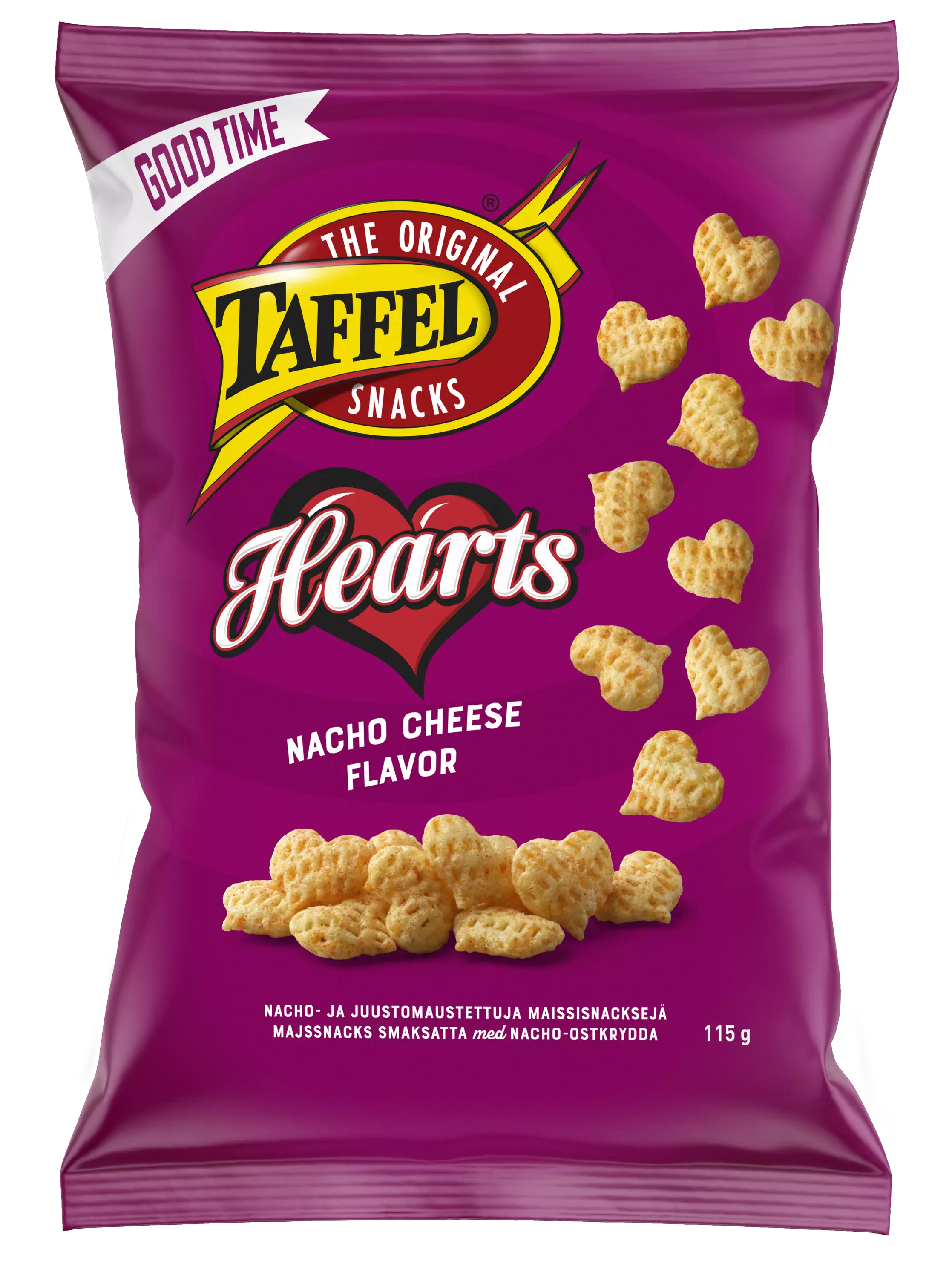 Herkullisen säväyttävät, nacho-juustolla maustetut superrapeat Taffel Heartsit saavat sinut varmasti näkemään sydämiä. Ole hyvä, ota sipsi!