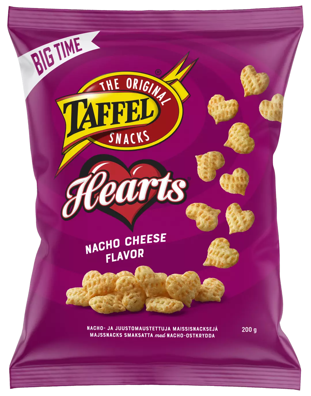 Herkullisen säväyttävät, nacho-juustolla maustetut superrapeat Taffel Heartsit saavat sinut varmasti näkemään sydämiä. Ole hyvä, ota sipsi!