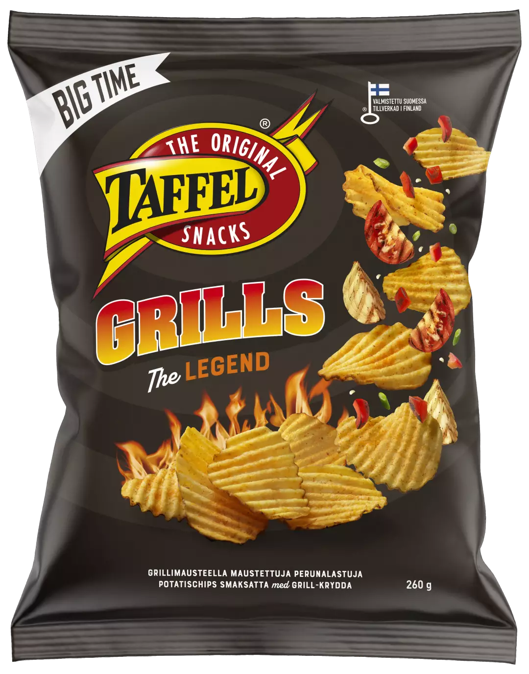 Sipsit tulille! Ihanan valloittavassa Taffel Grillsissä pomppivat paprika ja tomaatti kevyesti savustetussa, grillimaustetussa hurmoksessa.