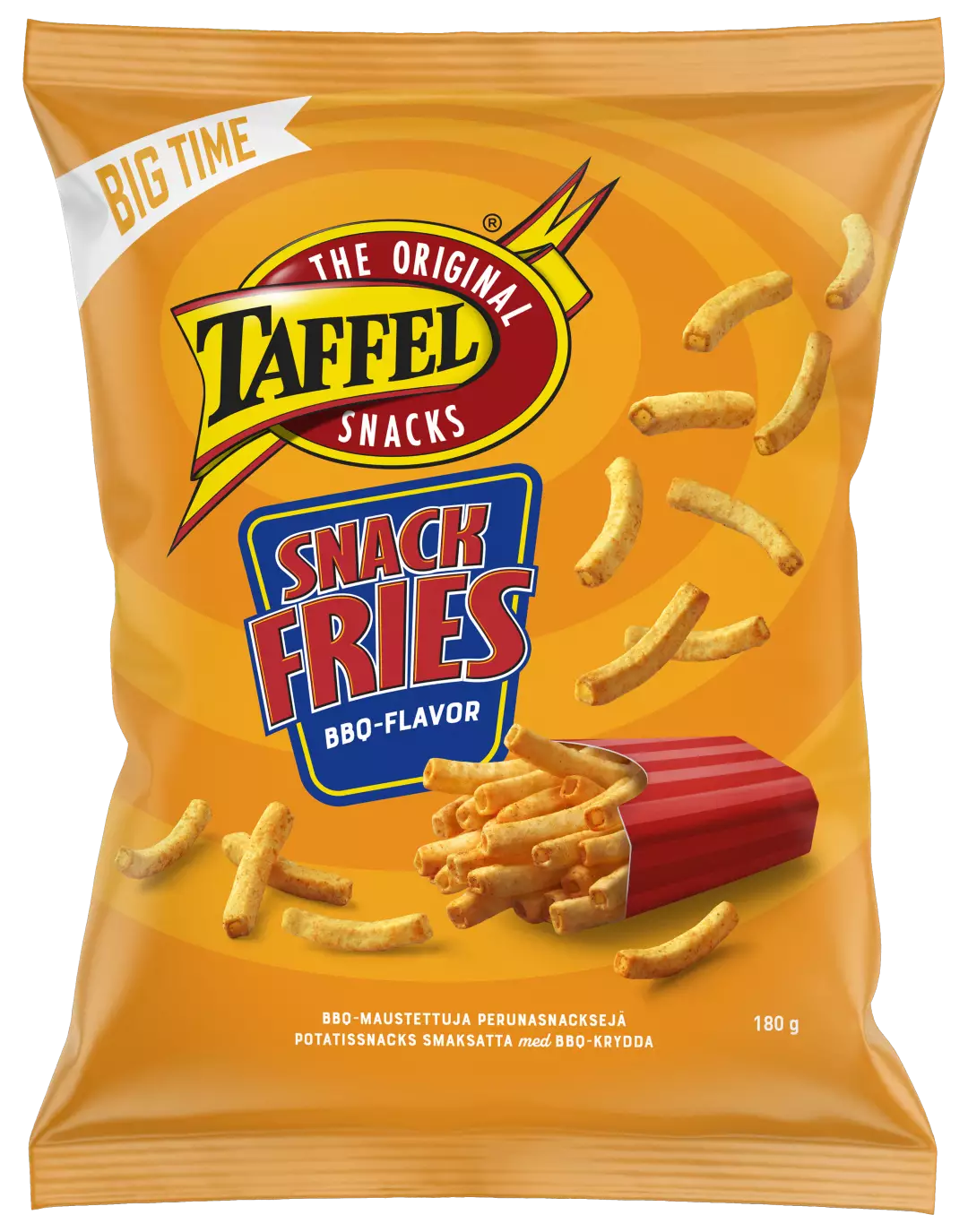 Herkullinen Taffel Snack Fries on kuin rapea ranskanperuna, mutta maustettu ihanalla BBQ-mausteella. Ja koska se on ontto, niin dippauselämys vie seuraavalle tasolle.