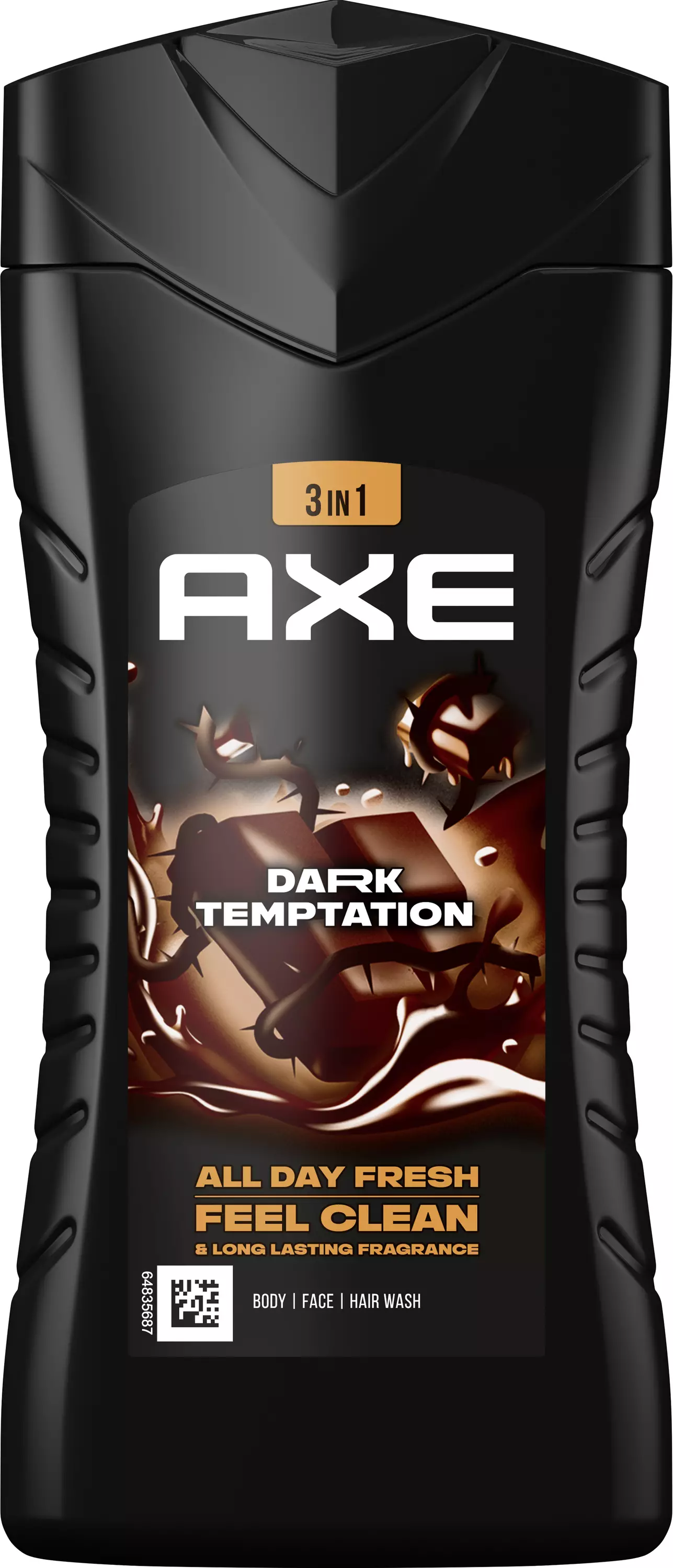 Uusittu miesten Axe Dark Temptation -suihkusaippua on tullut jäädäkseen. Axe Dark Temptation on miesten geelimäinen koko kehon suihkusaippua, joka pesee pois pahat hajut ja saa sinut tuoksumaan hyvältä pitkään – jopa 12 tuntia. Tunne Axe Dark Temptationin hienovarainen suklaan, meripihkan ja punaisten pippurien tuoksu, joka tekee tästä suihkugeelistä vastustamattoman. Aloita aamusi ottamalla virkistävä suihku ja käytä peseytyessä Axe Dark Temptation suihkusaippuaa. Saat ihoillesi raikkautta, joka kesää koko päivän. Pahat hajut ja hiki pysyvtä poissa ja sinä tunnet olevasi suihkunraikas koko päivän. Nyt on aika viedä ihonhoito kokonaan uudelle tasolle. Axe Dark Temptation Shower Gel pitää minkä lupaa: vastustamaton tuoksu ihollasi kestää, kestää ja kestää.Axe Dark Temptation -suihkusaippua on dermatologisesti testattu. Se sisältää 100 % kasviperäisiä kosteuttavia ainesosia, jotka tekevät ihostasi miellyttävän pehmeän. Oli päivä tai yö, tapahtuipa mitä tahansa, tulipa vastaan millaisia käänteitä hyvänsä, sinä olet tilanteen herra. Axe Dark Temptation tekee olostasi varman.Innovatiiviset miesten tuotteemme on luotu joka tilanteeseen: deodorantit, antiperspirantit, suihkugeelit, hajuvedet, hiustenmuotoilutuotteet – valikoimastamme löytyy jokaiselle jotakin. Mikset kokeilisi Axe Blackia, Anarchya tai Apolloa tai muita Axe-tuotteita! Joko tunnet nämä Axe-tuotteet:• Axe Black: hienostunut ja hienovarainen tuoksu, jossa yhdistyvät bergamotin ja setripuun sävyt.• Axe Anarchy: rikas, mausteinen tuoksu, jossa yhdistyvät tuoreet ja hedelmäiset tuoksut, santelipuu ja valkoinen meripihka.• Axe Apollo: klassisen maskuliininen, hienostunut tuoksu, jossa on votovoimaa. Vihreiden hedelmien, santelipuun ja tuoreen salvian raikkaat sävyt pitävät sinut vahvassa otteessaan.Axen tavoitteena on, että kaikki sen pakkaukset ovat kierrätettäviä tai sisältävät kierrätysmateriaaleja vuoteen 2025 mennessä. Axe Dark Temptation -suihkugeeli toimitetaan jo 100-prosenttisesti kierrätetyssä ja kierrätettävässä pullossa.* *Lukuun ottamatta korkkia.