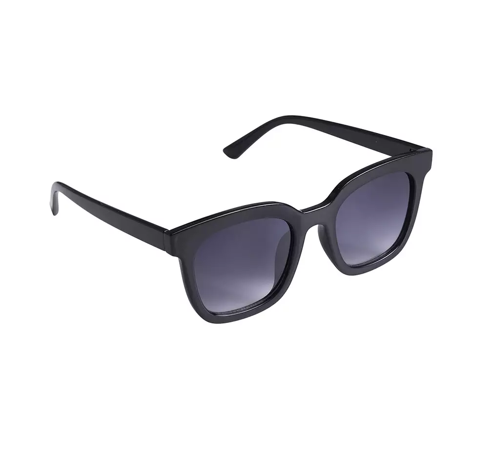 Ajaton, klassisen kaunis aurinkolasimalli naisille. Musta kehys ja harmaat liukuvärjätyt linssit. Muovikehys. 100 % UV-suoja. Linssin Kat. 3. Lasin korkeus 5,5 cm ja leveys 14,5 cm.
