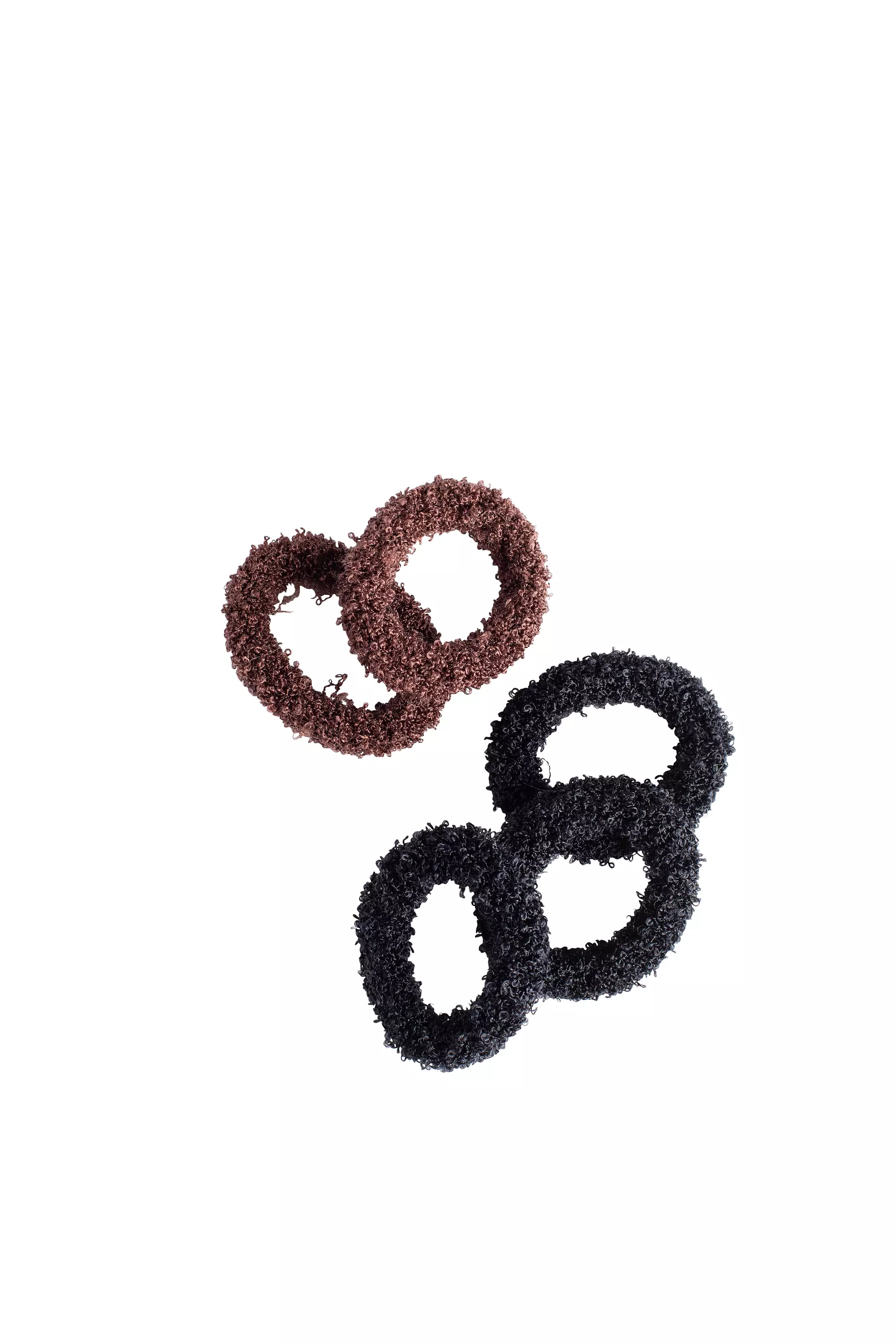 Lankadonitisetti 5 kpl. Erityisen pehmeät ja miellyttävät froteelenkit eivät katko hiuksia. Pakkauksessa 2 kpl ruskeita ja 3 kpl mustia hiuslenkkejä.