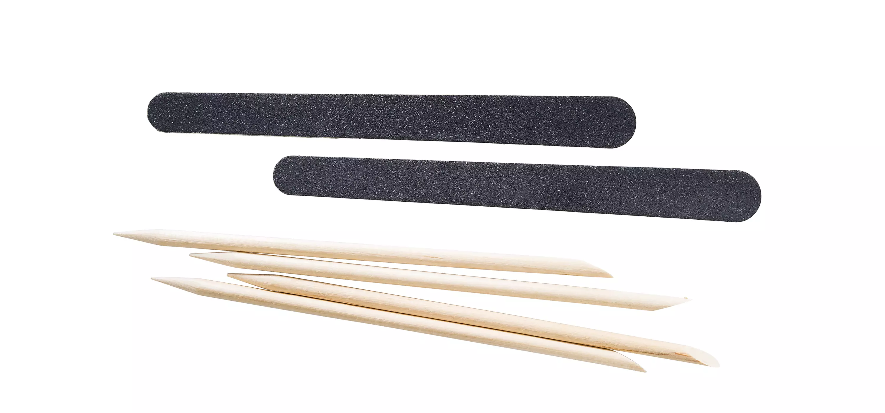 Manikyyrisetissä 4 kpl manikyyritikkuja ja 2 kpl kaksipuoleisia hiekkapaperiviiloja. Puista manikyyritikkua voi käyttää kynsinauhojen hoitamiseen, kynnen pinnan siistimiseen ja kynnen alustan puhdistamiseen. Puisen manikyyritikun päähän voi kiertää pumpulia ja kostuttaa sen kynsilakanpoistoaineeseen. Näin saa siistittyä kynsilakkauksen. Samoin pumpulin voi kastaa hoitoöljyyn ja työntää sen avulla kynsinauhoja irti kynnen pinnasta.
