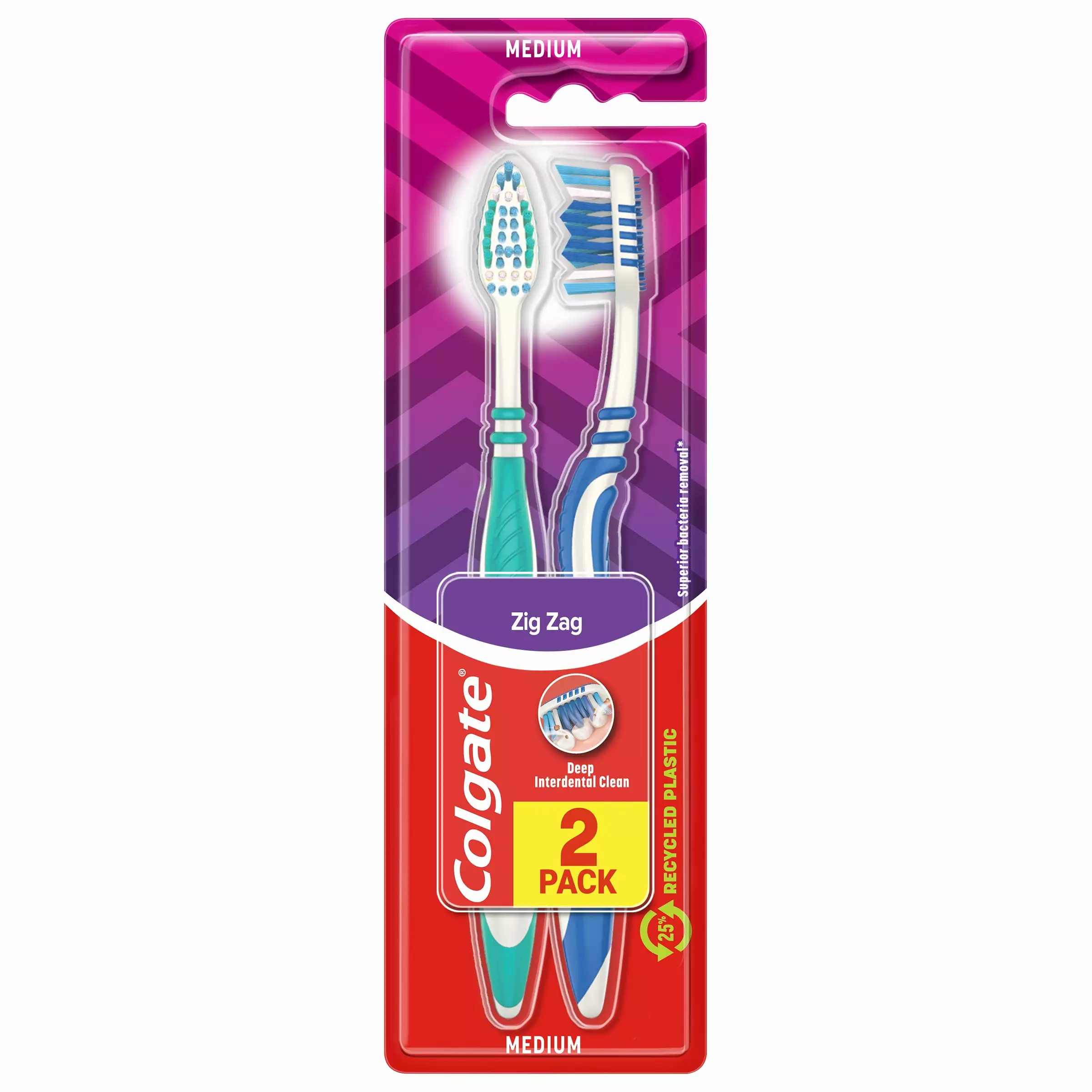 Puhdista suusi tehokkaasti Colgate ZigZag Medium -hammasharjalla, jonka ristikkäiset harjakset puhdistavat syvältä hammasväleistä ja kielenpuhdistin poistaa pahaa hajua aiheuttavia bakteereja koko suusta. Colgate ZigZag -hammasharjan joustava kaula tekee harjaamisesta mukavampaa sekä hellävaraisempaa ikenille. Harjaksiin uutetut hopeaionit estävät bakteerien kasvua harjaksissa*. *Harjakset eivät tapa bakteereja suussa tai suojaa sinua taudeilta. Pese tuote aina huolellisesti.