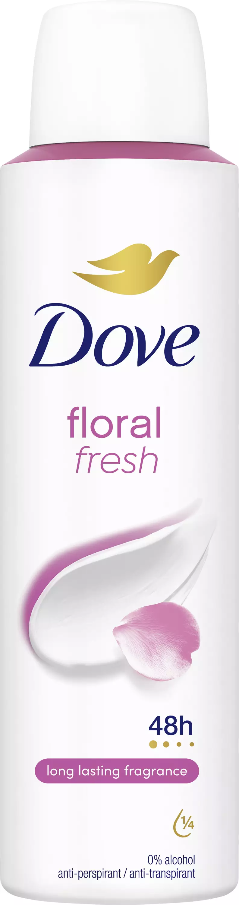 Dove 48h Floral antiperspirantti deodorantti spray on täysin alkoholiton ja sen koostumuksessa on mukana kosteusvoide, joten se auttaa pitämään ihon pehmeänä ja sileänä kosketukselle. Tämä Doven antiperspirantti tarjoaa helpotusta kainaloille, koska se auttaa vähentämään kainalokarvojen ajamisen aiheuttamaa ihoärsytystä. Hedelmäisen granaattiomenan tuoksun ansiosta tunnet itsesi varmaksi ja tuoksut upealta koko päivän. Kun tarvitset suojaa hikoilua ja pahaa hajua vastaan, ota käteesi Dove 48h Floral antiperspiranttinen deodoranttisuihke. Tuotteen sisältämä ainutlaatuisen edistyksellinen ja ihoystävällinen koostumus antaa paitsi tehokkaan suojan hikoilulta, se myös hoitaa ihoasi. Samalla kun se on hellävarainen iholle, se pitää pahat hajut ja hien loitolla jopa 48 tunnin ajan. Dove antiperspirantti pitkäkestoisella tuoksulla auttaa sinua aloittamaan päiväsi itsevarmasti. Tämä antiperspirantti deodorantti auttaa lievittämään kainaloiden ärsytystä ja pitää kainalot suojattuina ja hoidettuina kaikissa tilanteissa uskomattoman pitkään. Suihke sisältää 0 % alkoholia joten se ei ärsytä ihoa. Saat eniten irti 48 tunnin antiperspirantista, kun suihkutat tätä alkoholitonta antiperspiranttideodoranttia tasaisesti kumpaankin kainaloon. Suihkuta deodoranttia tarpeen mukaan lisää päivän aikana. Saat parhaan deodoranttisuojan, kun varmistat, että kainalot ovat puhtaat ja kuivat ennen antiperspirantin suihkuttamista. Hyvä idea on säilyttää deodoranttia kodin kylpyhuoneen lisäksi esimerkiksi työpaikalla työpöydän laatikossa. Laita myös yksi pakkaus antiperspiranttia mukaan kuntosalilaukkuusi. Dove 48h Floral antiperspirantti deodorantti on suihke, joka suojaa parhaalla tavalla hikoilulta sekä torjuu pahoja hajuja ja epämiellyttäviä tuoksuja. Dove on PETA Cruelty Free -sertifioitu.