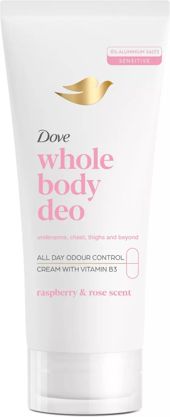 Kehomme hikoilevat ja tuoksuvat mistä tahansa – kysy vaikka rintaliiveiltä pitkän, kuuman päivän jälkeen.Olemme saaneet tarpeeksemme kehon hajusta, joten loimme tämän: koko vartalon deodorantin, joka tarjoaa koko päivän hajukontrollin, hoitaa herkkää ihoa ja antaa itsevarmuutta päästä varpaisiin.Olipa kyseessä helleaalto tai hot jooga, tämä koko vartalon deodorantti on tukenasi – kainaloista rintakehään, reisiin ja muualle.All body Raspberry & Rose -deodorantti yhdistää Dove-tuotteista tutun ihonhoidon tehokkaaseen hajukontrolliin koko vartalolle – myös herkille alueille.Koostumus sisältää hoitavia öljyjä ja glyseriiniä. Se kohdistuu hajuihin niiden lähteellä ja pitää sinut raikkaana.Kun sanomme "koko vartalon deodorantti", tarkoitamme sitä. Käytä tätä missä tahansa, missä koet kehon hajua – rintojen alla, reisissä, alaselässä, jaloissa, kainaloissa ja muualla.Kyllä, tämä ihoa hellivä koostumus on dermatologisesti testattu.Tämä näkymätön deodorantti on läpinäkyvää ja sen sotkuton suunnittelu mahdollistaa helpon koko vartalon käytön.Se on myös rikastettu vadelma & ruusu -tuoksulla, joka pitää sinut raikkaana koko päivän – minne tahansa päivä sinut viekin.Vain ulkoiseen käyttöön.