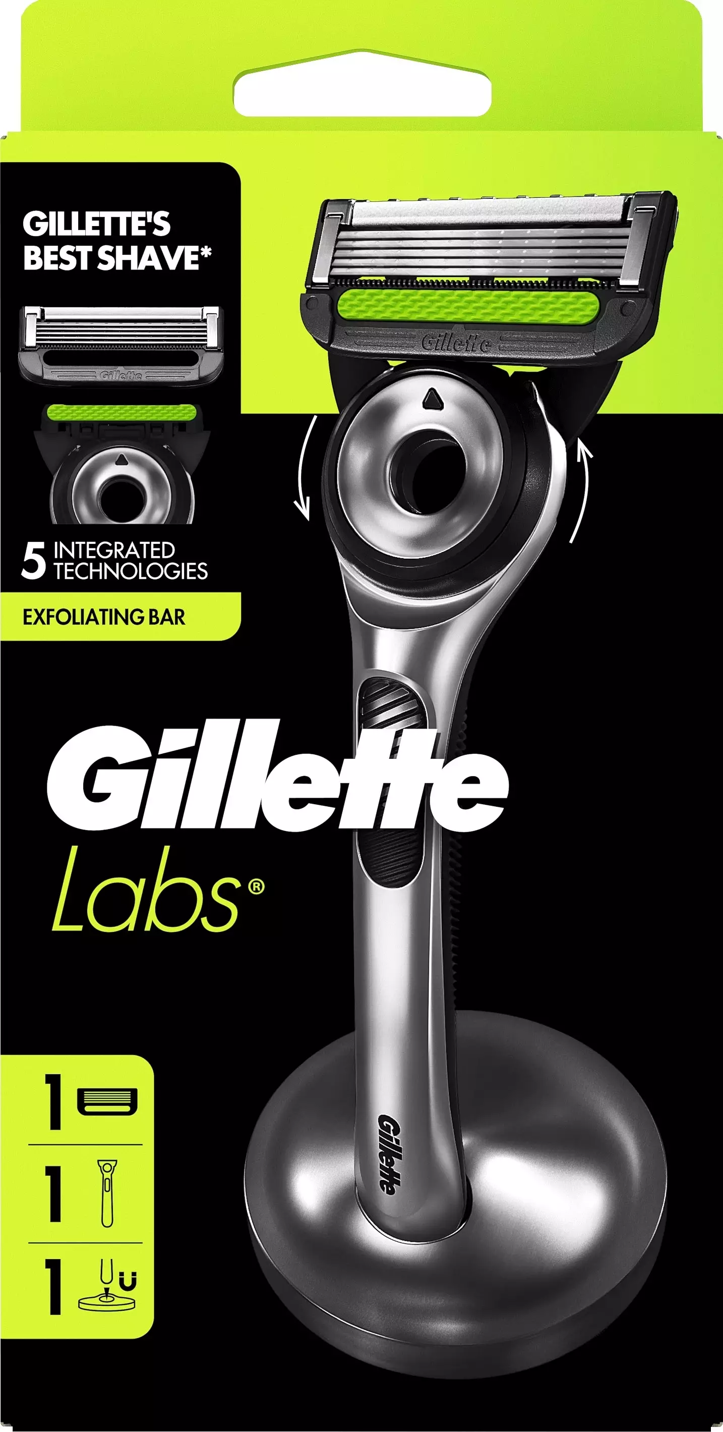 GilletteLabs with Exfoliating Bar by Gillette on maailman ensimmäinen höylä, jonka varteen integroitu kuorintateknologia irrottaa kiinni jääneet ihokarvat ennen kuin terät ohittavat ne. Tämä takaa ensiluokkaisen sileyden yhdellä vedolla. 2D FlexDisc -teknologia myötäilee kasvojesi muotoja, minkä ansiosta saat mukavan ja ihonmyötäisen ajon joka vedolla. Partahöylässä on 5 Gilletten parasta terää* (*terät ovat saatavilla myös muihin Gillette-tuotteisiin), ja se on suunniteltu nopeaan ja helppoon parranajoon. Käytä yhdessä GilletteLabs-vaihtoterien kanssa. Höylän varrella on elinikäinen takuu (lisätiedot osoitteessa gillette.se/labs/warranty.)