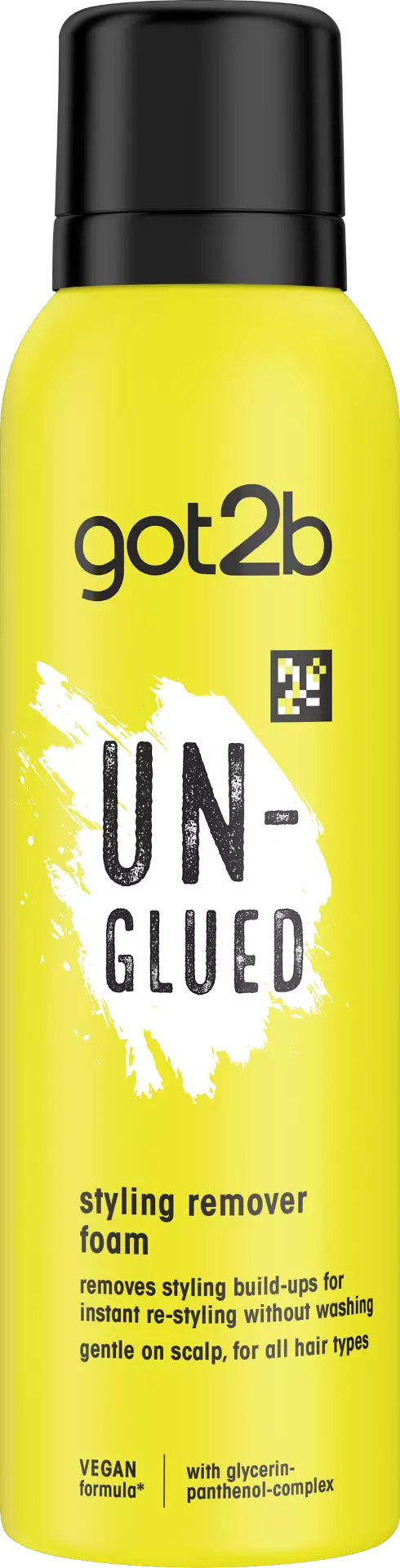 "got2b Un-Glued Styling Remover Foam 150ml poistaa muotoilujäämät ja antaa mahdollisuuden uuteen tyyliin ilman hiustenpesua.Reset your style, ready to re-style!Sileä aamulla, sotkuinen illalla – mutta ei aikaa pestä hiuksia? got2b Un-Glued Styling Remover Foam on sun luottotuote, kun haluat päästä eroon geelistä tai hiuslakasta jääneistä muotoilujäämistä nopeasti ja helposti. Se luo täydellisen pohjan uudelle tyylille – ilman hiustenpesua. Ja parasta? Se on hellävarainen hiuspohjalle ja rikastettu glyseriini-panthenoli-yhdistelmällä, joka saa hiukset tuntumaan pehmeiltä ja terveiltä. Vegaaninen* koostumus sopii kaikille hiustyypeille.Näin käytät:1. Levitä muotoiltuihin hiuksiin.2. Ravista pulloa, ota pieni määrä vaahtoa kämmenille ja hiero hellästi hiuksiin, kunnes muotoilujäämät alkavat irrota (15–30 sek).3. Toista tarvittaessa.4. Kampaa jäämät pois ja muotoile uudelleen.Styling-vinkki:Parhaan lopputuloksen saat pyyhkeellä, föönillä tai antamalla tuotteen vaikuttaa yön yli.Tuotteen edut yhdellä silmäyksellä:• Muotoilunpoistovaahto• Poistaa muotoilujäämät• Mahdollistaa välittömän uudelleenmuotoilun ilman pesua• Hellävarainen hiuspohjalle• Sopii kaikille hiustyypeille• Sisältää glyseriini-panthenoli-yhdistelmän• Vegaaninen koostumus*• 150mlTietoa got2b Glued -sarjasta:Glued sopii kaikille hiustyypeille – suorat, laineikkaat tai kiharaiset – se toimii! Glued hiustenmuotoilutuotteet tekevät jokaisesta tyylistä totta, samalla kun ne ovat hellävaraisia hiuspohjalle ja iholle – dermatologisesti testattuja, jotta voit olla huoletta!* Ei sisällä eläinperäisiä ainesosia"