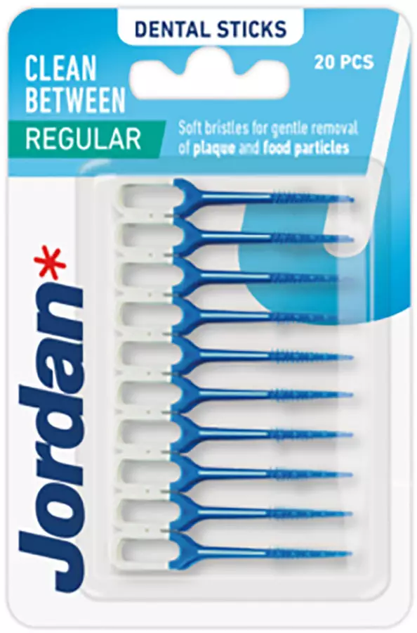 Jordan Clean Between -hammastikun pehmeät ja miellyttävät kumiharjakset liukuvat hammasväleihin helposti ja turvallisesti. Tikut hierovat hellästi ikeniä ja parantavat niiden verenkiertoa. Jordan Clean Between Regular - normaalin kokoiset hammastikut, sopivat parhaiten ahtaille ja normaaleille hammasväleille.