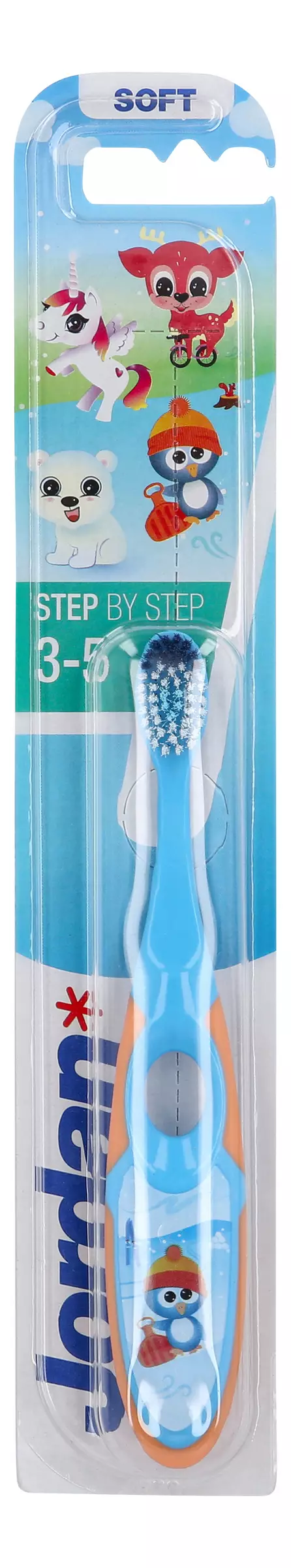 Jordan Step by Step 3-5-vuotiaiden hammasharjassa on pehmeä ja entistä tuuheampi harjaspää. Muotoillusta kahvasta saa hyvän ja pitävän otteen. Harjaspään siniset harjakset auttavat annostelemaan oikean määrän hammastahnaa. 4 eri hahmoa ja väriä. Valitettavasti hahmoa ja väriä ei voi valita verkkokaupasta tilattaessa, toimitus varastotilanteen mukaan.