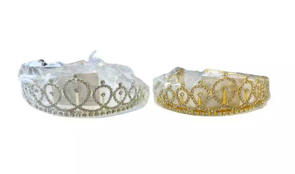 Kaunis metallinen kruunu prinsessaleikkeihin ja teemajuhliin. Kruunun päät auki, joten sopii monen kokoisiin päihin. Kruunun päissä kampamaiset piikit, jotta pysyy paikallaan kampauksissa.