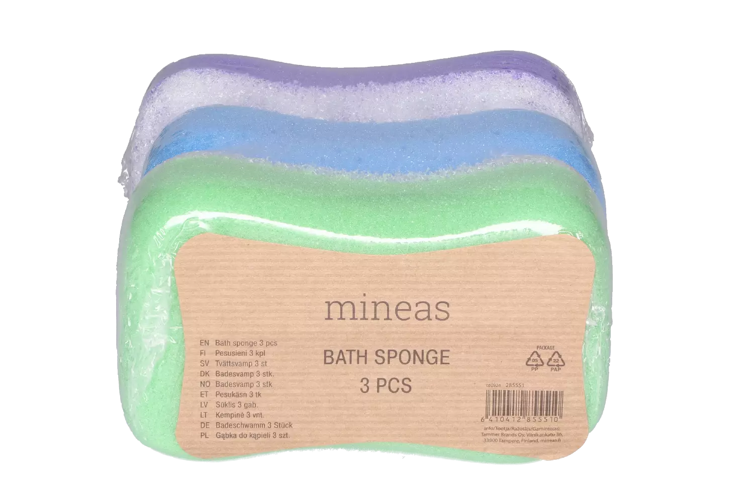 Pakkaus jossa kolme pesusientä; 2 x 2-puoleinen +1 x 1-puoleinen.