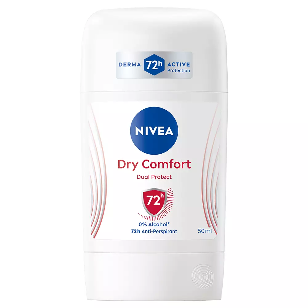 NIVEA Dry Comfort Deo Stick -antiperspirantti antaa tehokkaan ja luotettavan 72 tunnin antiperspiranttisuoja, joka hoitaa ihoa. Kaksoisvaikutteinen koostumus sisältää kaksi aktiivista antiperspiranttiainesosaa ja 0% etyylialkoholia, antaa iholle miellyttävän ja kuivan tunteen. Miellyttävä, raikas tuoksu. Dermatologisesti testattu. Kierrätettävä pakkaus. Stick on formaattina kätevä myös matkaillessa; saat sen käsimatkatavaroihin ilman erillistä pakkaamista nestemäisten tuotteiden kiintiöön.