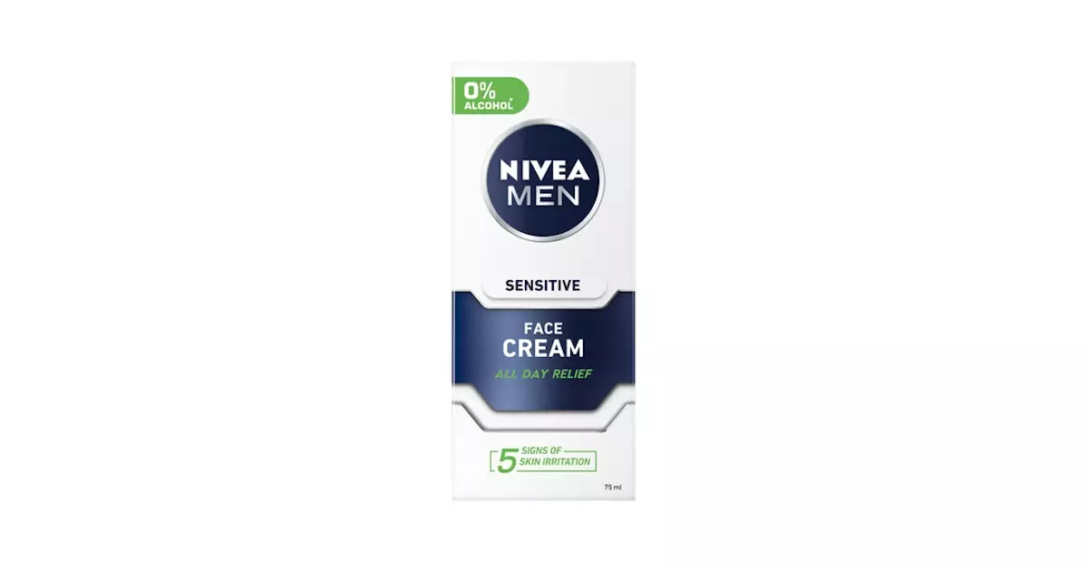 NIVEA MEN Sensitive Face Cream -kasvovoide herkälle ja helposti ärtyvälle iholle. Kamomillaa ja E-vitamiinia sisältävä alkoholiton* koostumus rauhoittaa välittömästi 5 parranajon jälkeistä ihoärsytyksen merkkiä: polttavaa tunnetta, punoitusta, kuivuutta, kireyden tunnetta ja kutinaa. Taikapähkinää sisältävä kevyt voide kosteuttaa ihoa tehokkaasti 24 tunnin ajan. *ei sisällä etyylialkoholia. Dermatologisesti testattu.Käyttö: Levitä voidetta kasvoille aamuin illoin.