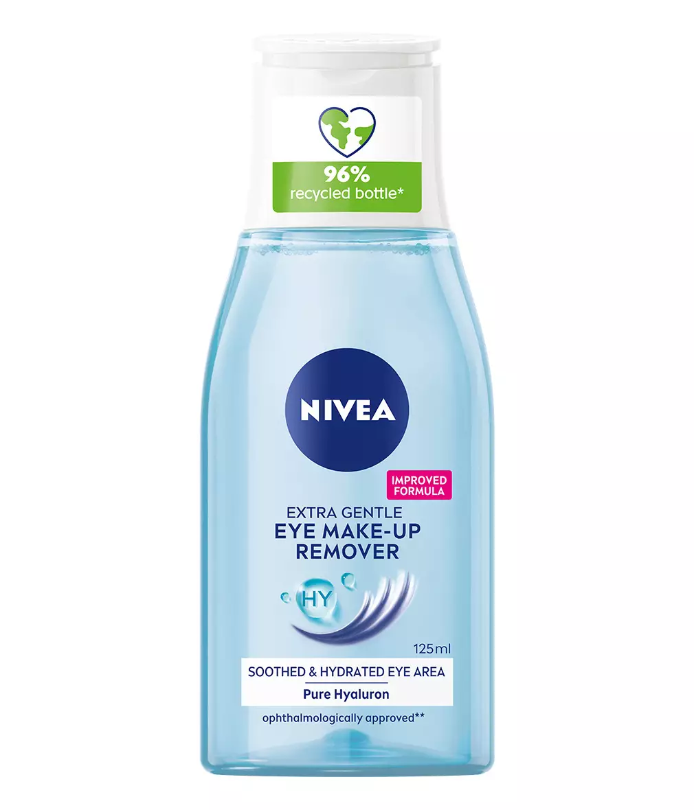 NIVEA Gentle Eye Make-Up Remover -silmämeikinpuhdistusaine puhdistaa meikin hellävaraisesti! Poistaa tehokkaasti vesiliukoisen ripsivärin. Kosteuttaa ja hoitaa herkkää silmänympärysihoa sekä ripsiä. Sisältää puhdasta hyaluronihappoa. Sopii kaikille ihotyypeille ja tekee ripsistä kauniit ja pehmeän tuntuiset. Ei jätä öljyistä tai rasvaista tunnetta iholle. Suojaa ripsiä ja niiden rakennetta. Testattu ihotauti- ja silmälääkäreiden valvonnassa. Dermatologisesti testattu.-> Poistaa tehokkaasti vesiliukoisen ripsivärin-> Kosteuttaa ja hoitaa herkkää silmänympärysihoa-> Ei jätä ihoa öljyisen tuntuiseksiKun poistat meikkejä silmistäsi, on tärkeää, että olet niin hellävarainen kuin mahdollista. Mekaaninen ärsyke, kuten voimakas hierominen tai hankaaminen voivat ärsyttää silmänympärysten herkkää ihoa, mikä voi johtaa punoitukseen ja silmänalusryppyihin. NIVEA Gentle Eye Make-Up Remover -silmämeikinpuhdistusaineella ei tarvitse hangata tai painaa herkkää silmänympärysaluetta. Sulje vain silmät ja paina vanulappu kevyesti silmäluomelle, anna vaikuttaa hetki - ripsiväri liukenee vanulappuun!