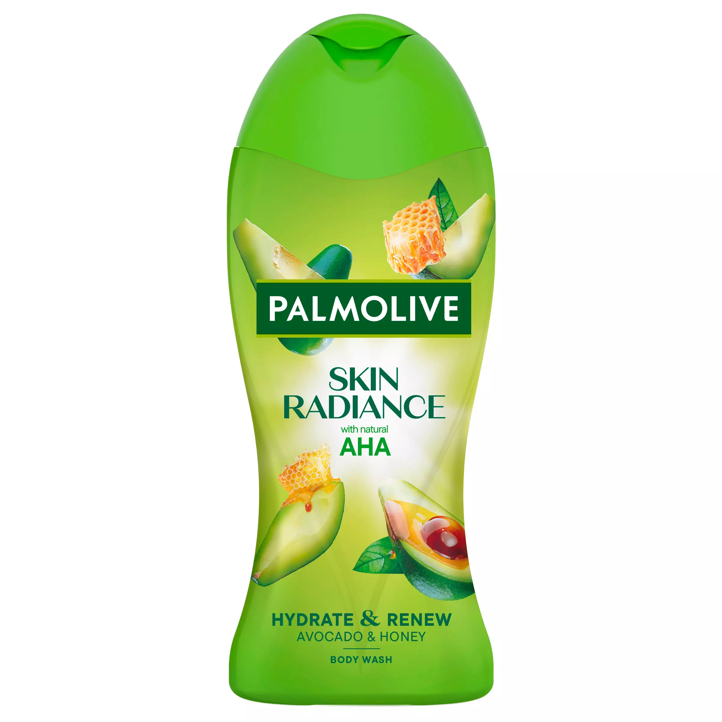 Astu ulos jokaisesta suihkusta säteilevänä peseytymällä Palmolive Skin Radiance Avocado & Honey -suihkusaippualla. Ravinteikkaista superfoodeista inspiroituneena tämä kuoriva suihkusaippua sisältää avokado-uutetta sekä 100% luonnollista AHA:ta, joka auttaa ihoasi uudistumaan. AHA kuorii ihoa hellävaraisesti poistamalla kuolleita ihosoluja ja auttaa säilyttämään ihon kosteustasapainon ja pitämään sen kirkkaana. Se sopii täydellisesti tähän kuorivaan suihkugeeliin, joka antaa sinulle säteilevän, hehkuvan ihon. AHA-suihkusaippua sisältää myös glyseriiniä, joka auttaa pitämään ihon kosteutettuna ja jättää sen tuntumaan pehmeältä. Avokado ja hunaja myös jättävät sinut ihanan tuoksuiseksi jokaisen suihkun jälkeen.Suihkusaippuan koostumus on 95% luonnollista alkuperää* ja 98% biohajoava**.*Vesi ja luonnollisesti hankitut raaka-aineet, joita on käsitelty mahdollisimman vähän. **Koskee koostumuksen orgaanista osaa.