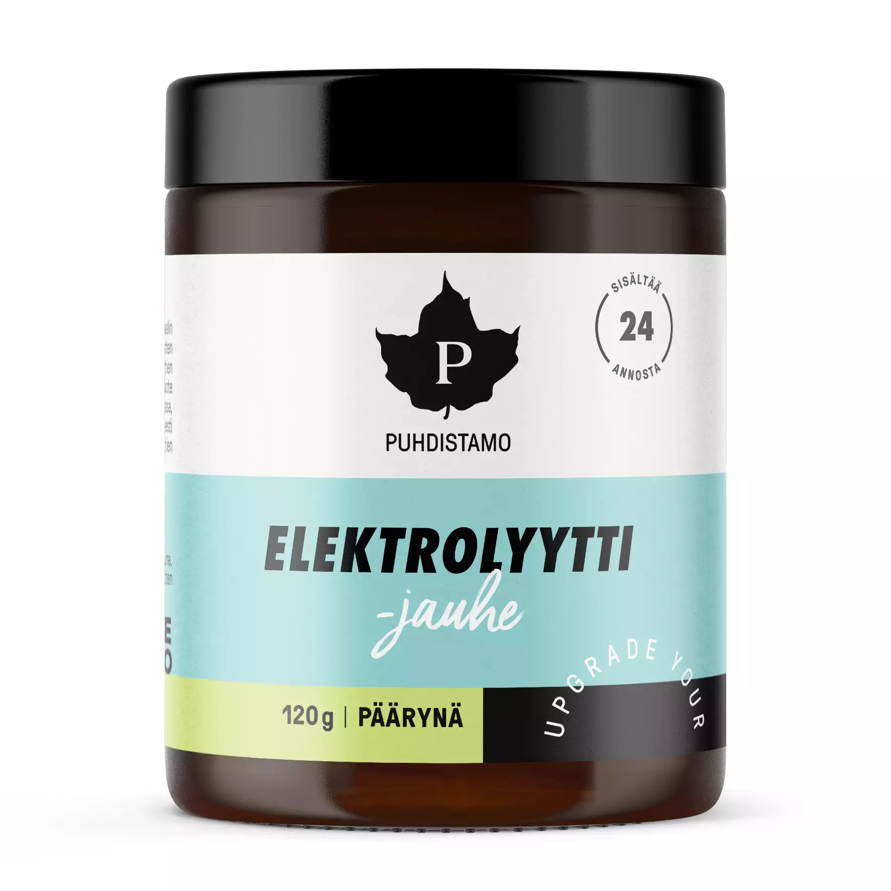 Puhdistamon elektrolyyttijauhe on sokeriton, kokonaisvaltainen ja herkullisen makuinen elektrolyyttijuomajauhe, joka auttaa pitämään yllä tarpeellisten elektrolyyttien tasapainoa elimistössämme. Se sisältää natriumin lähteenä toimivan Guérande-merisuolan sekä muiden keskeisimpien elektrolyyttien lisäksi muun muassa C-vitamiinia sekä orgaanista rikkiä (OptiMSM®). Tuote soveltuu käytettäväksi nesteytykseen aina kun hikoilemme esimerkiksi urheillessa, saunoessa tai kuumana kesäpäivänä. Elektrolyyttijauheemme sopii myös täydellisesti tukemaan ketogeenisessa ruokavaliossa esiintyvää lisääntynyttä elektrolyyttien tarvetta. Yksi annos sisältää vain 0,1 g hiilihydraatteja. Vegaaninen tuote.