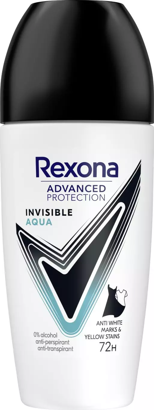 Rexona Invisible Aqua antiperspirantti -deodorantti Roll-on. 72 tunnin jatkuva suoja hikeä ja hajua vastaan ??samalla kun deodorantti suojaa vaatteita valkoisilta ja keltaisilta tahroilta. Voit tuntea olosi raikkaalta, kuivalta ja suojatulta koko päivän, ja vaatteesi pysyvät yhtä suojattuina kuin sinäkin. Loppujen lopuksi paras muotiasuste ei ole hiki- tai deodoranttitahrat. Rexonan ansiosta voit liikkua ja elää täysillä ja tuntea olosi aina yhtä itsevarmaksi. Rexona ei petä, sen tehoon voit luottaa tilanteessa kuin tilanteessa. MotionSense-teknologian ansiosta Rexona Invisible Aqua -antiperspirantti tarjoaa raikkautta, joka kestää tunnista toiseen. Mitä enemmän liikut, sitä enemmän Rexona suojaa ainutlaatuisen teknologiansa ansiosta. Liikkuessasi deodorantin sisältämät mikrokapselit rikkoutuvat vapauttaen enemmän tuoksua. Lähde siis rohkeasti liikkeelle! Rexonan deodorantit on suunniteltu aktiivista elämää viettäville. Riippumatta siitä mitä teet elämässäsi – kiipeät vuorille, juokset bussille, pidät esityksen kollegoille tai menet treffeille – voit luottaa siihen, että Rexona antaa virkistävän lähdön päivään ja parhaan suojan hikoilua vastaan. Rexona on alan edelläkävijä. Antiperspiranttimme piristävät tuoksut kestävät pitkään. Taattua raikkautta? Kyllä. Ja sinä voit keskittyä siihen, mikä on sinulle tärkeintä. Levitä antiperspirantti tasaisesti kainaloiden iholle peittäväksi suojaksi. Ja se on siinä! Rexona suojaa sinua hikoilulta, pahoilta hajuilta ja epämiellyttäviltä tuoksuilta tunnista toiseen. Meidän tärkein tehtävämme on tietää kaikki hikoilusta. Se, mitä opimme ja tiedämme, johtaa jatkuvasti uusiin tuoteinnovaatioihin. Mitä tahansa päivässäsi tapahtuukaan, sinä olet siihen valmis!