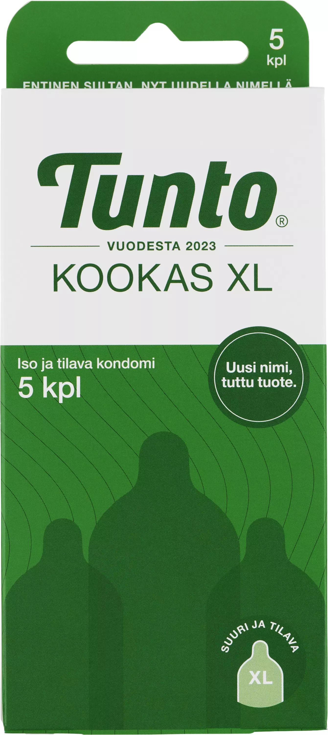 Uusi nimi, tuttu tuote! Tunto Kookas XL on erittäin suuri lateksikondomi, jonka pidempi ja leveämpi istuvuus antaa tilaa myös mukavuudelle. Sopii heille, jotka kokevat normaalit kondomit liian lyhyiksi tai ahtaiksi. Kondomi on väritön, sileäpintainen ja kyllästetty liukuvoiteella. Kondomin pituus on 200mm, ympärysmitta 120mm ja halkaisija 60mm.