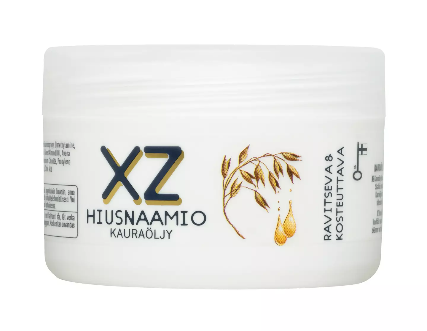 XZ Kauraöljy hiusnaamio kosteuttaa tehokkaasti hiuksia ja hiuspohjaa. Se sisältää ravitsevia luonnonöljyjä, kuten manteli- ja kauraöljyä. Kauraöljyn keramidit auttavat vähentämään hiusten huokoisuutta ja parantavat kammattavuutta. Naamio tekee hiuksista kiiltävät, sileät ja helposti käsiteltävät. Tuote on valmistettu Heinävedellä ja sille on myönnetty Avainlippu-tunnus.