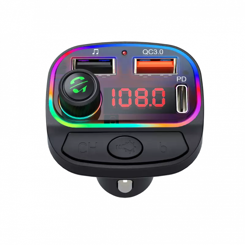 Mobia Bluetooth FM-lähetin siirtää langattomasti musiikin tai puhelun puhelimestasi auton FM-radioon. Sisäänrakennettu mikrofoni sekä USB-A QC3.0 18W jaUSB Type-C PD 18W latausportit Näyttävä design säädettävällä LED-tunnelmavalaistuksella Bluetooth Versio: V5.0Bluetooth handsfree: A2DP (Musiikin toisto ja puhuminen)Jännite: 9-24VUSB-latausportit: USB-A QC3.0 18W ja USB Type-C PD 18W (5V 3A, 9V 2A, 12V 1.5A)Musiikkiformaatti: MP3, WMA/WAV/APE, toisto muistitikulta USB-portistaFM taajuuskaista: 87.5 - 108MHz
