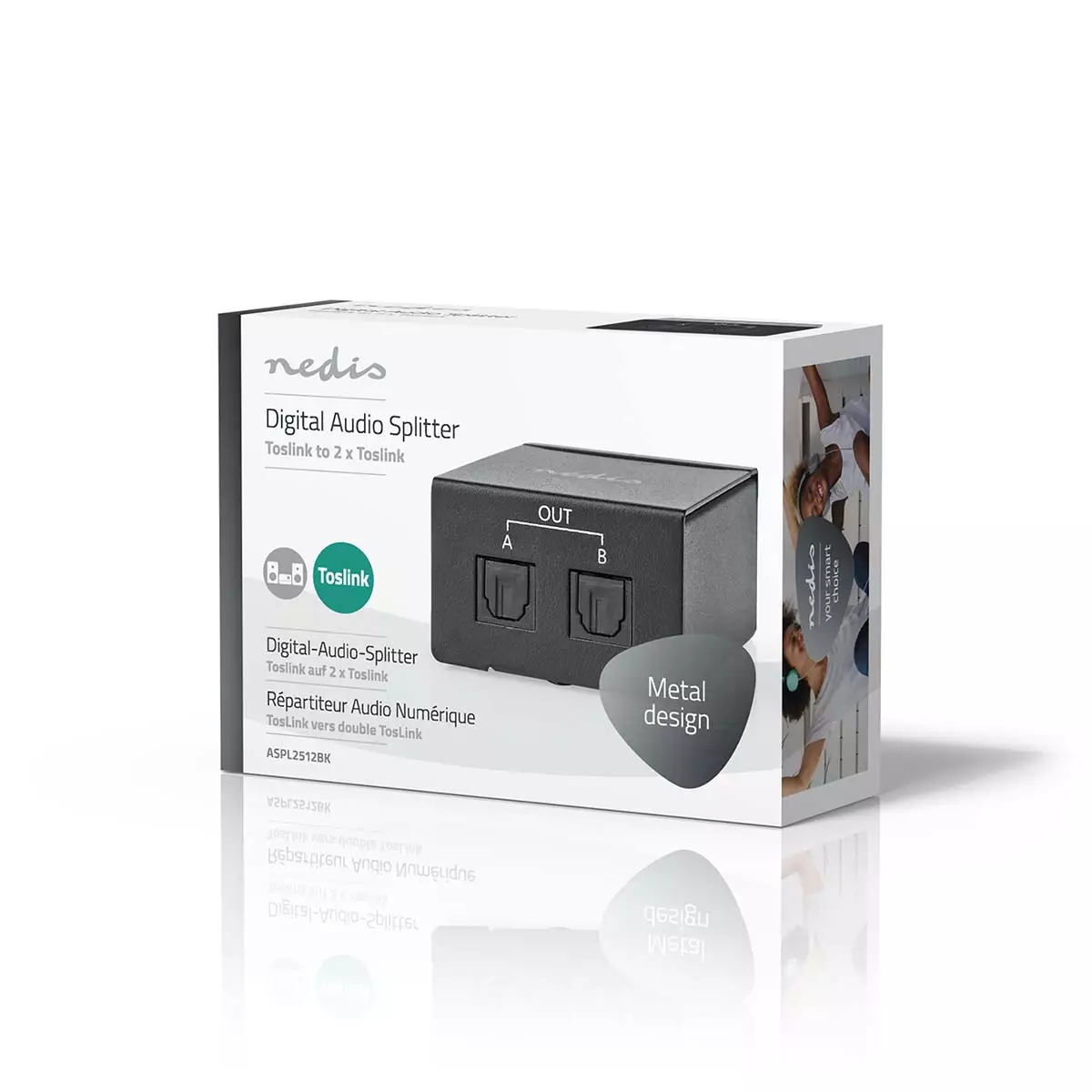 Tämä digitaalinen kaksisuuntainen optinen Nedis-audiojakaja on suunniteltu siirtämään digitaalinen äänisignaali yhdestä tulosta kahteen lähtöön TosLink-kaapeleiden avulla.